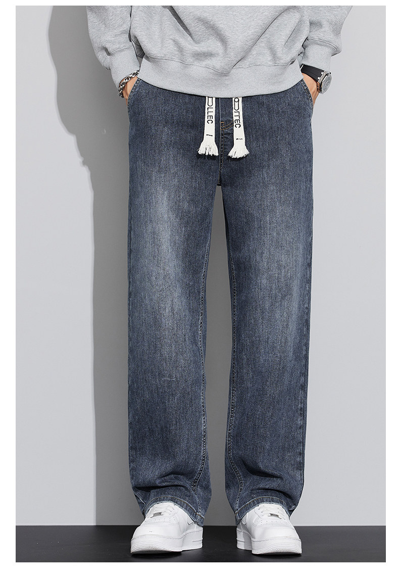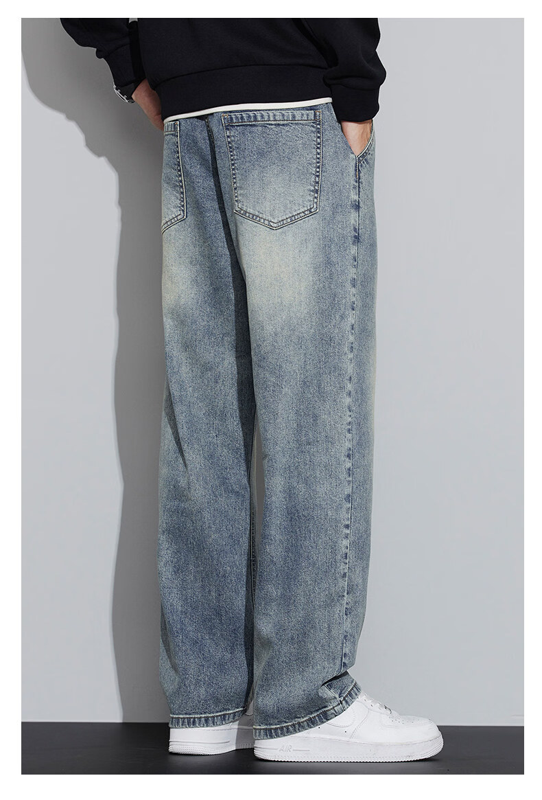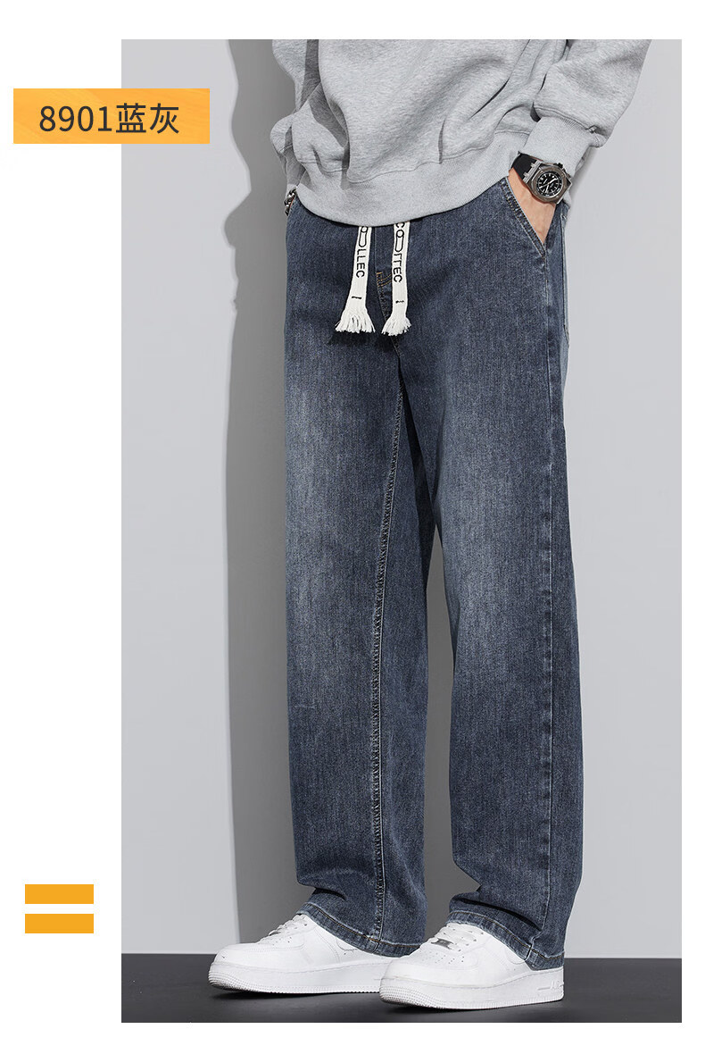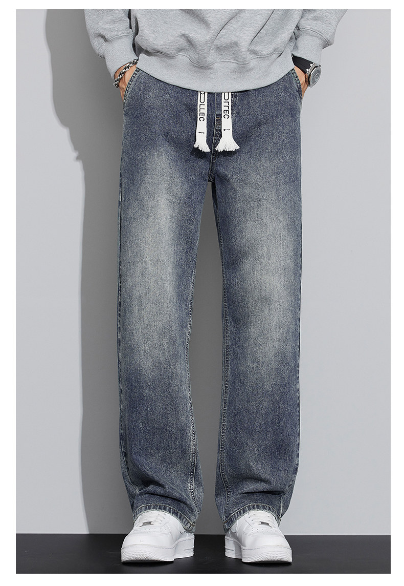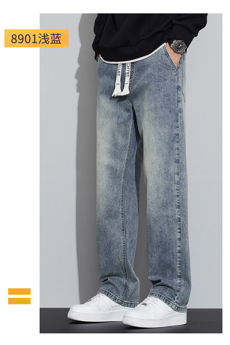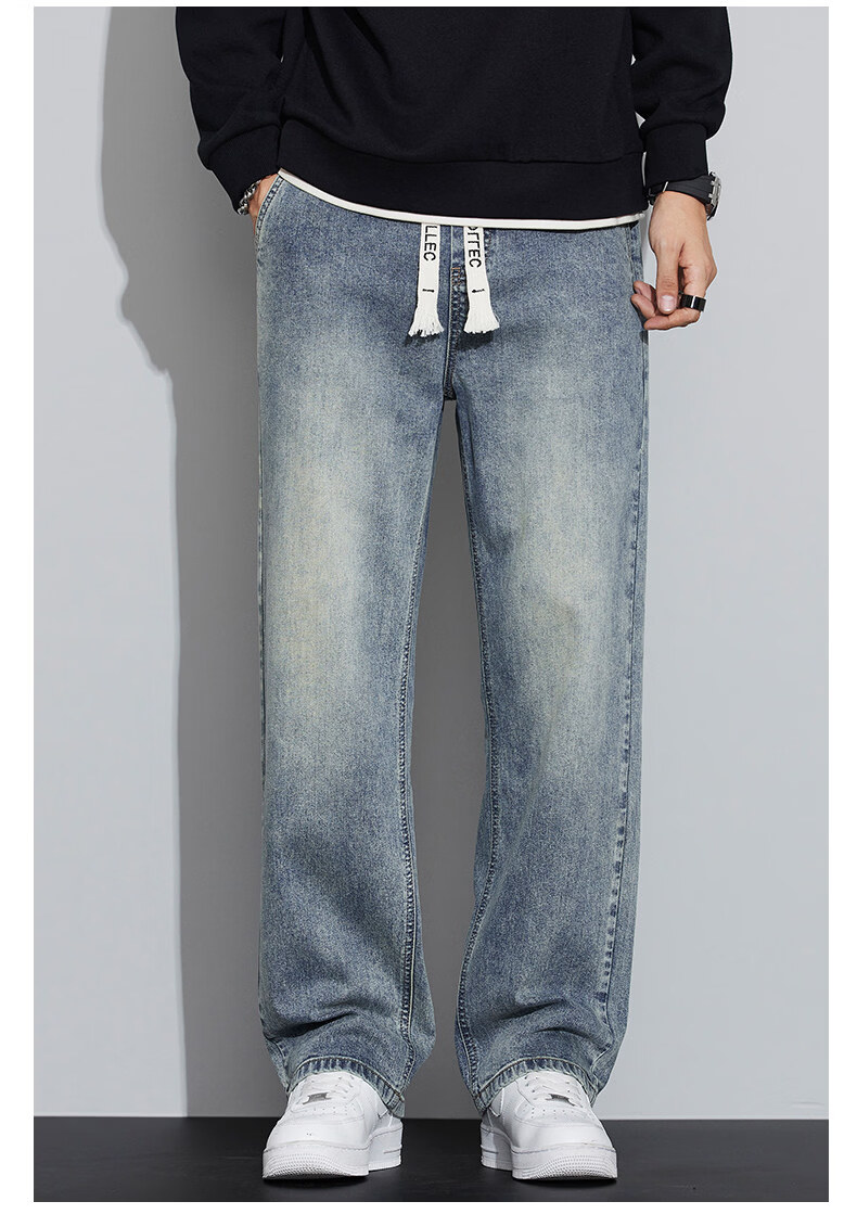 真维斯(Jeanswest)2026春秋季新款牛仔裤男宽松简约直筒长裤男士抽绳阔腿休闲长裤子 8901复古蓝 S