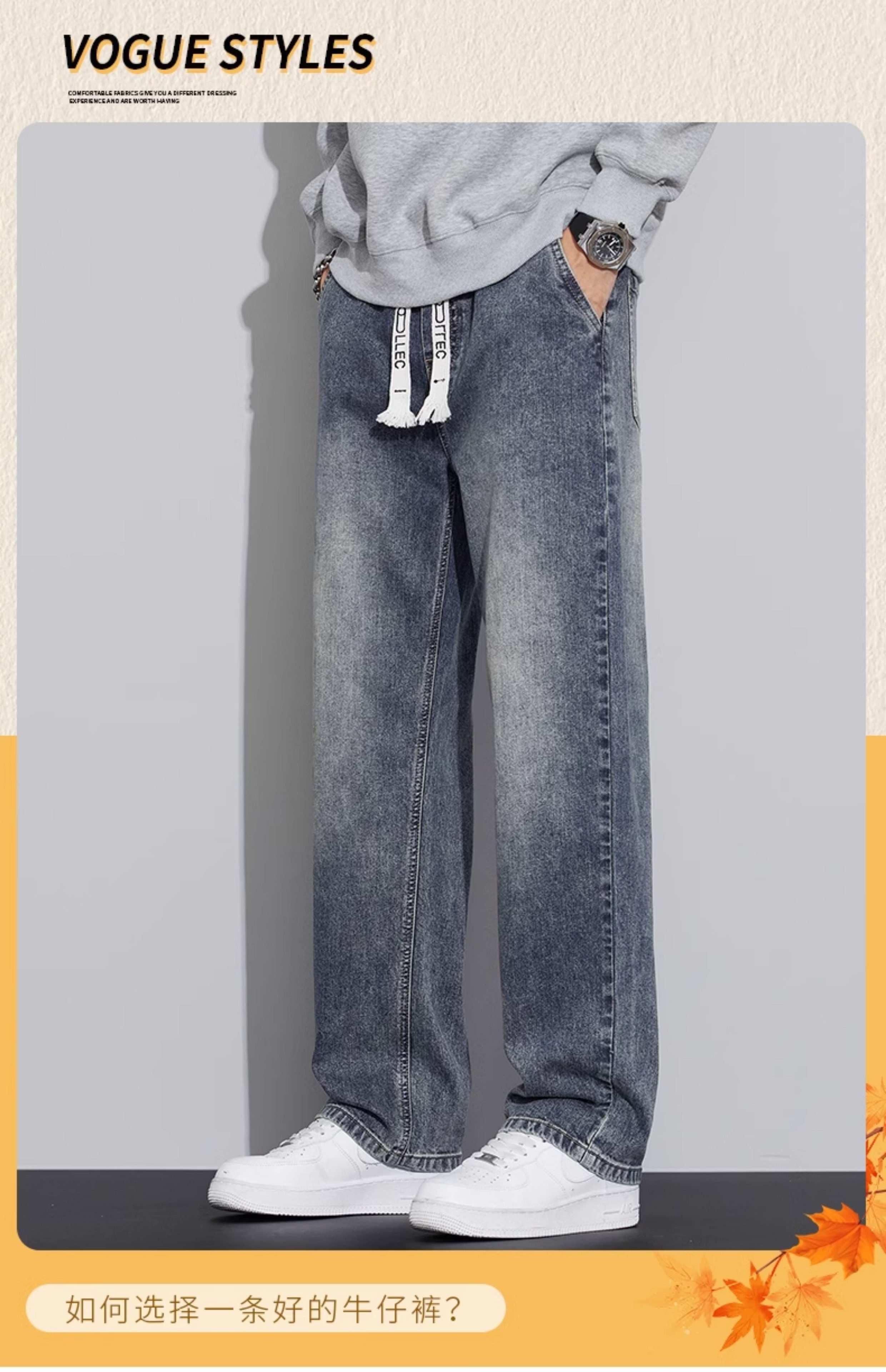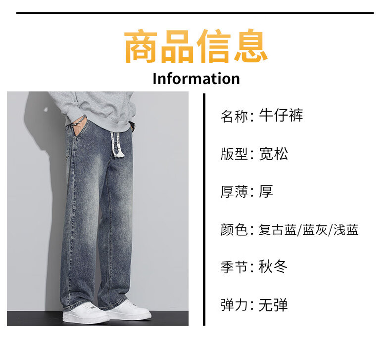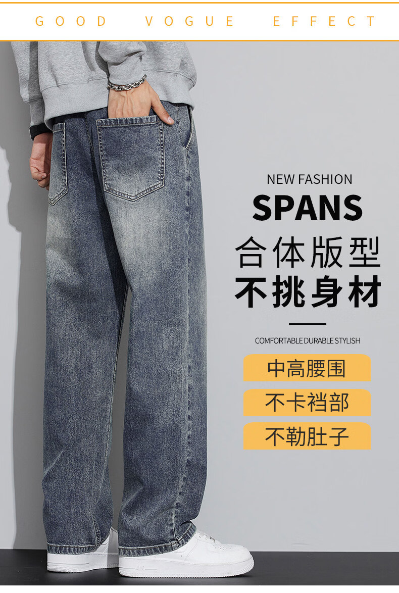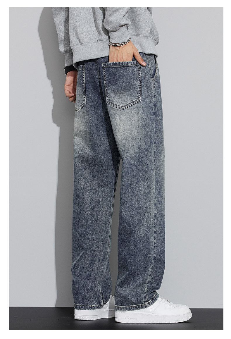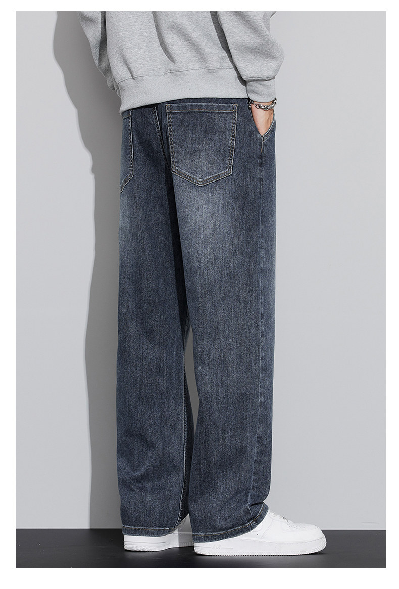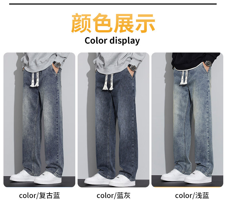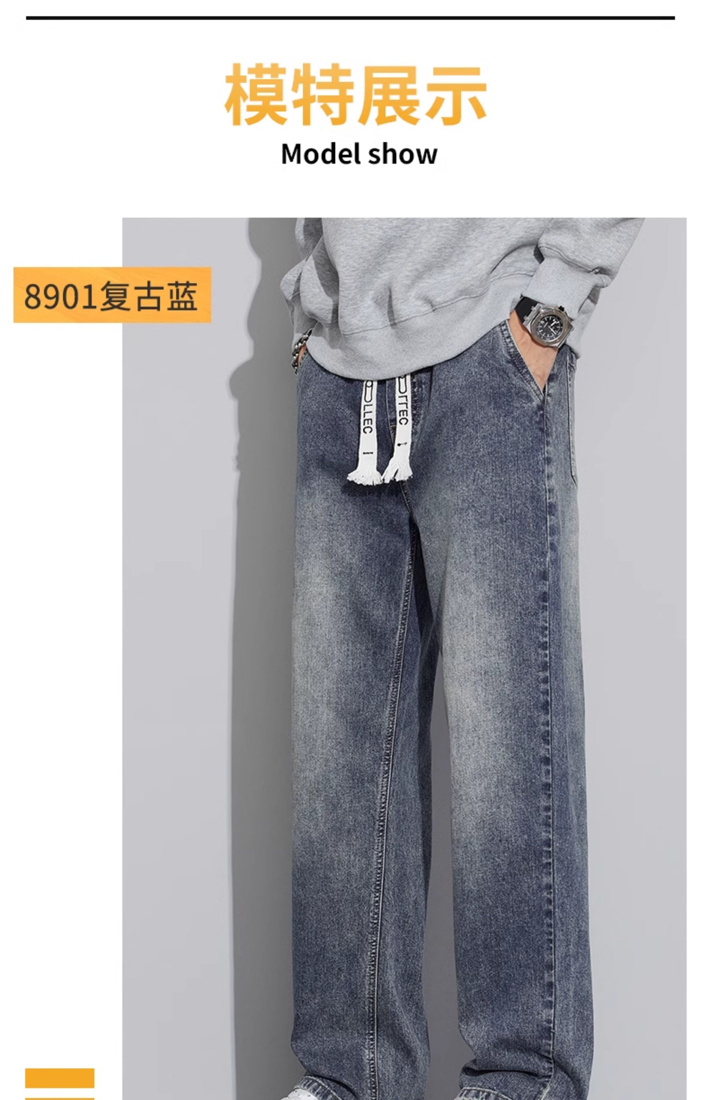 真维斯(Jeanswest)2026春秋季新款牛仔裤男宽松简约直筒长裤男士抽绳阔腿休闲长裤子 8901复古蓝 S