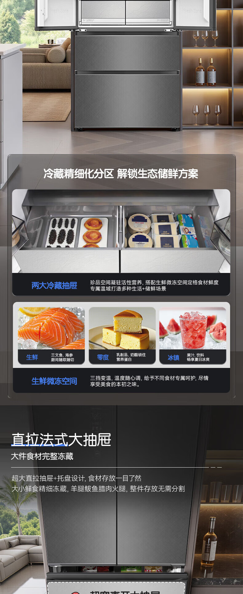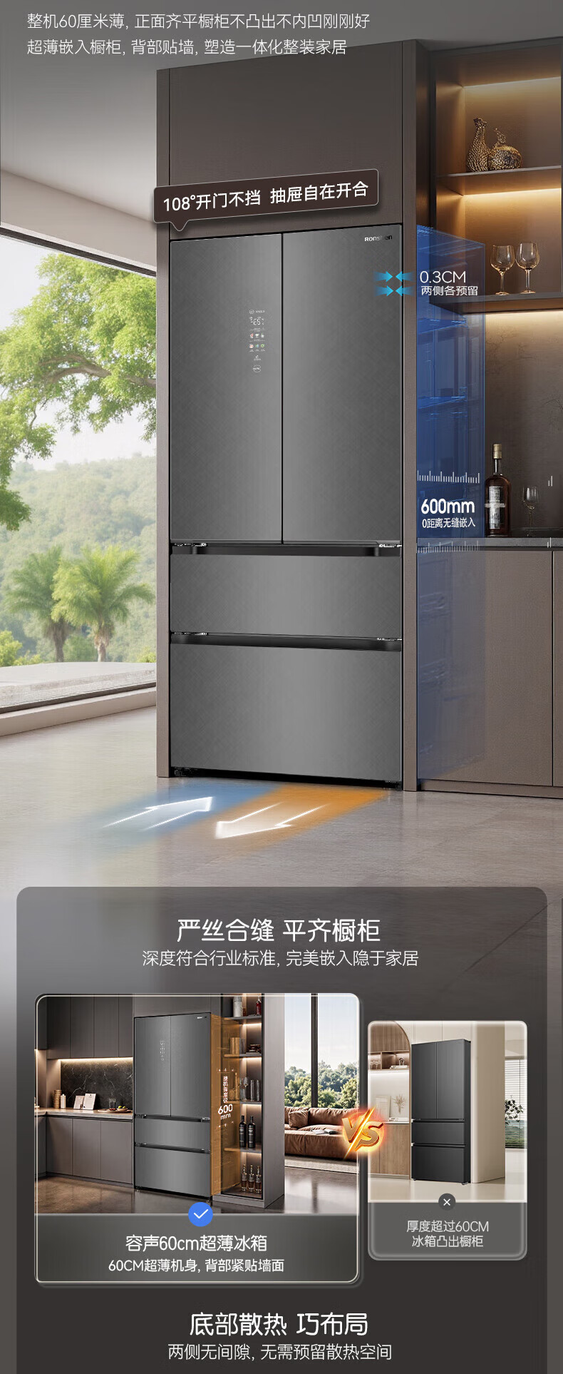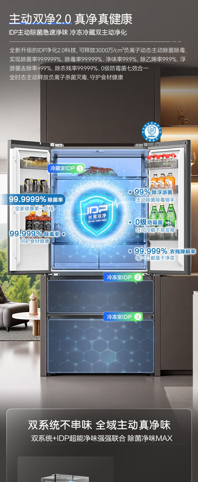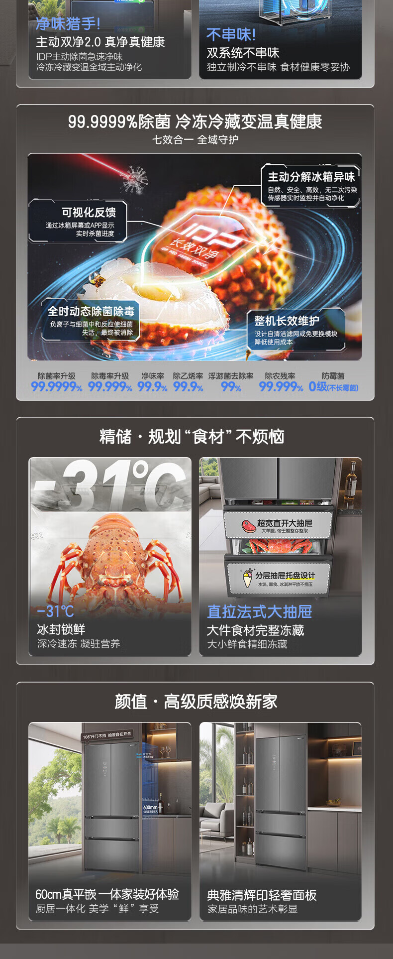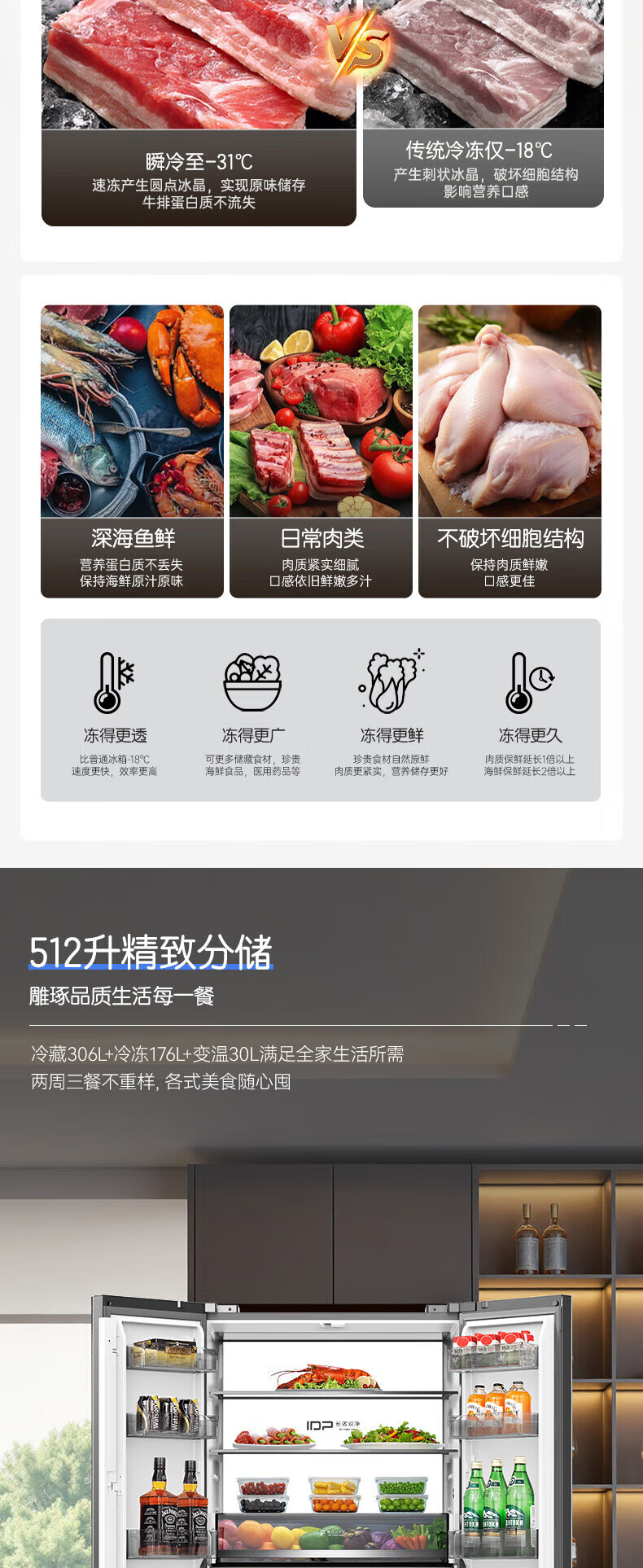 容声512升双系统三循环60CM平嵌十字四门家电冰箱一级能效变频风冷 BCD-512P60FZGAR清辉印