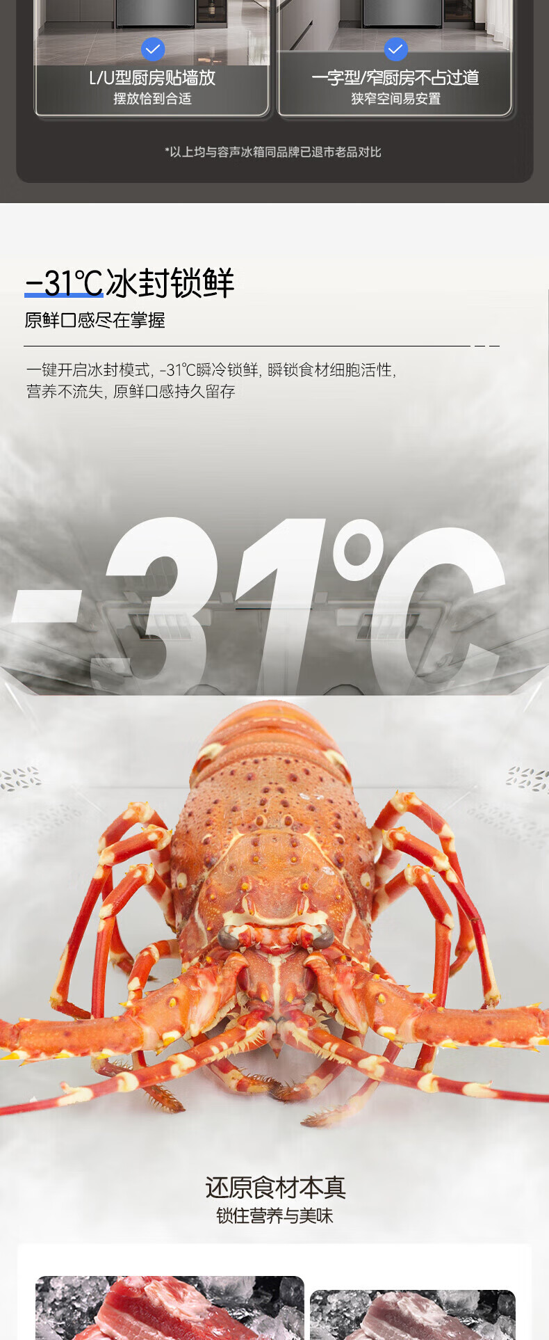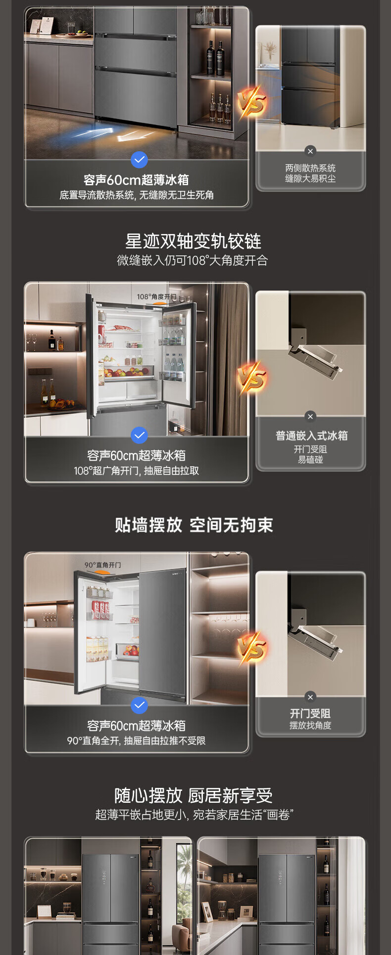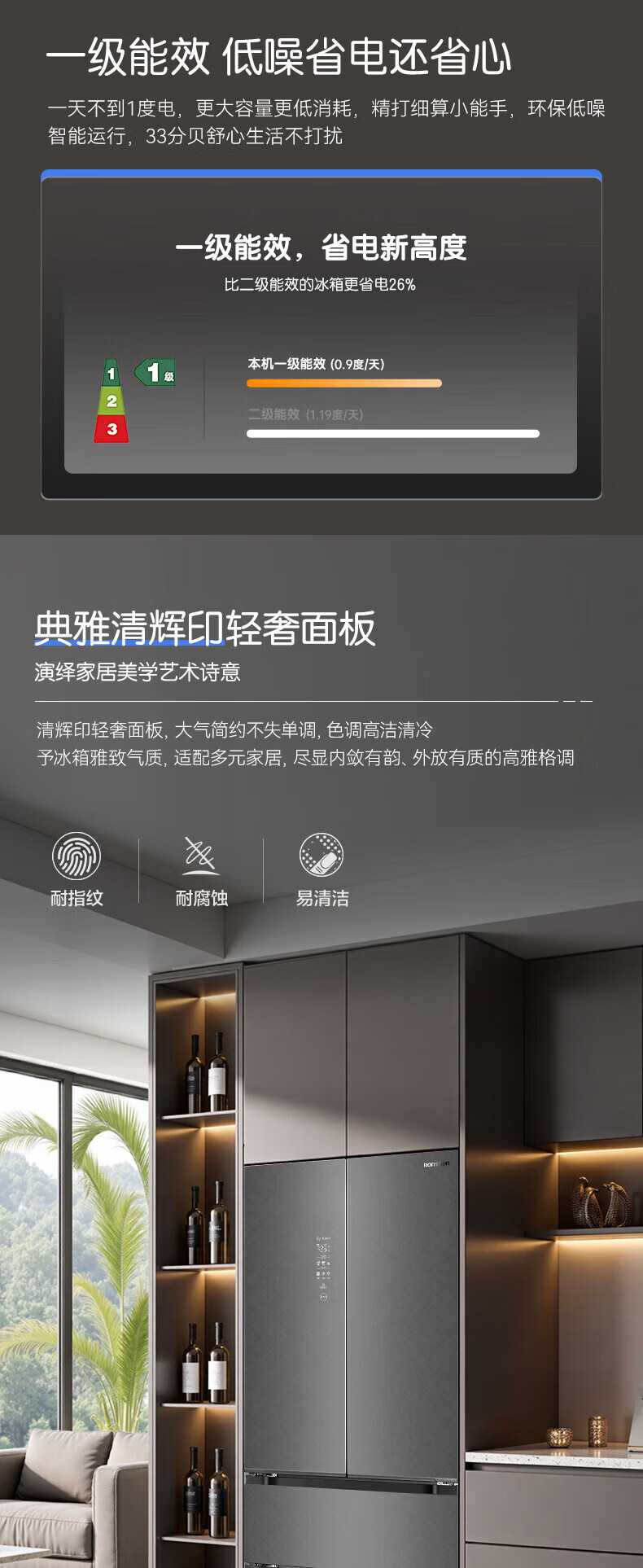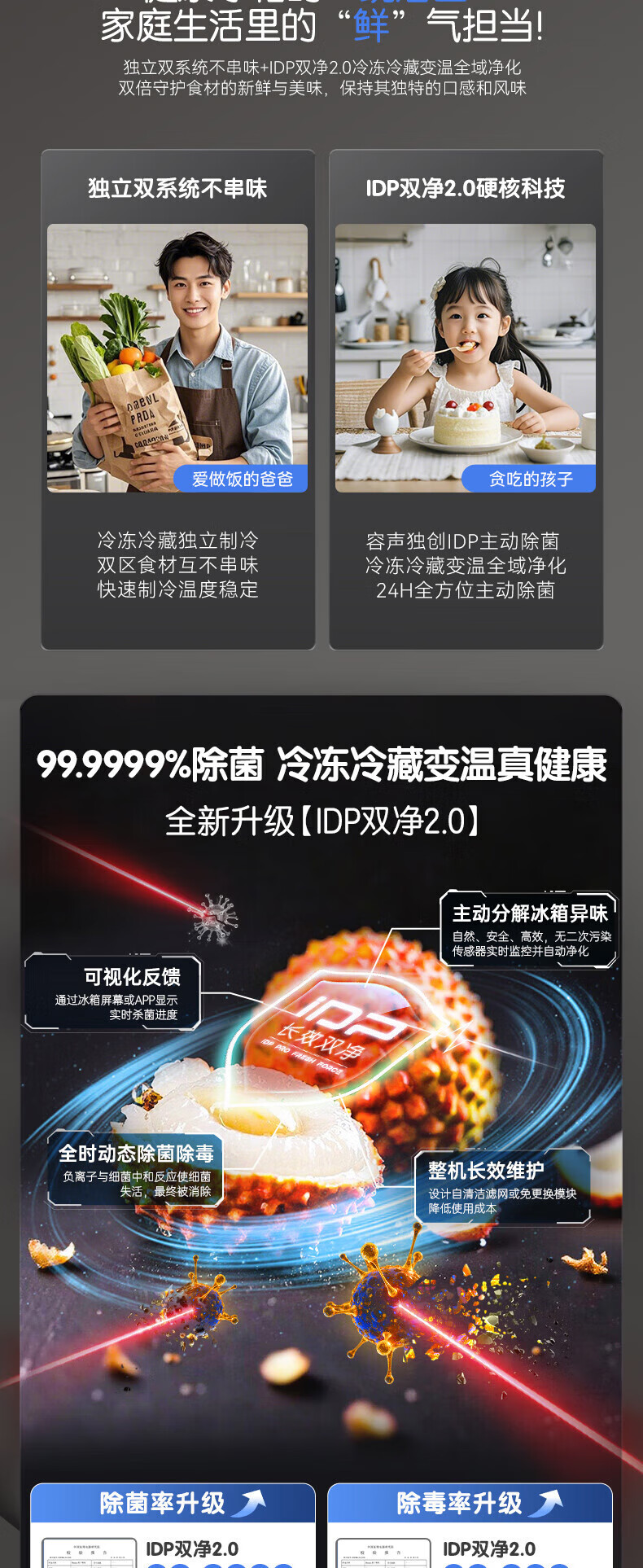 容声512升双系统三循环60CM平嵌十字四门家电冰箱一级能效变频风冷 BCD-512P60FZGAR清辉印