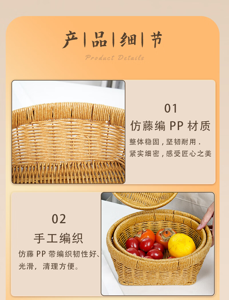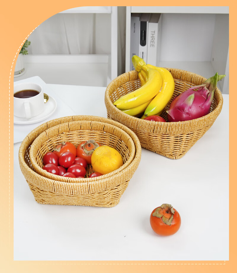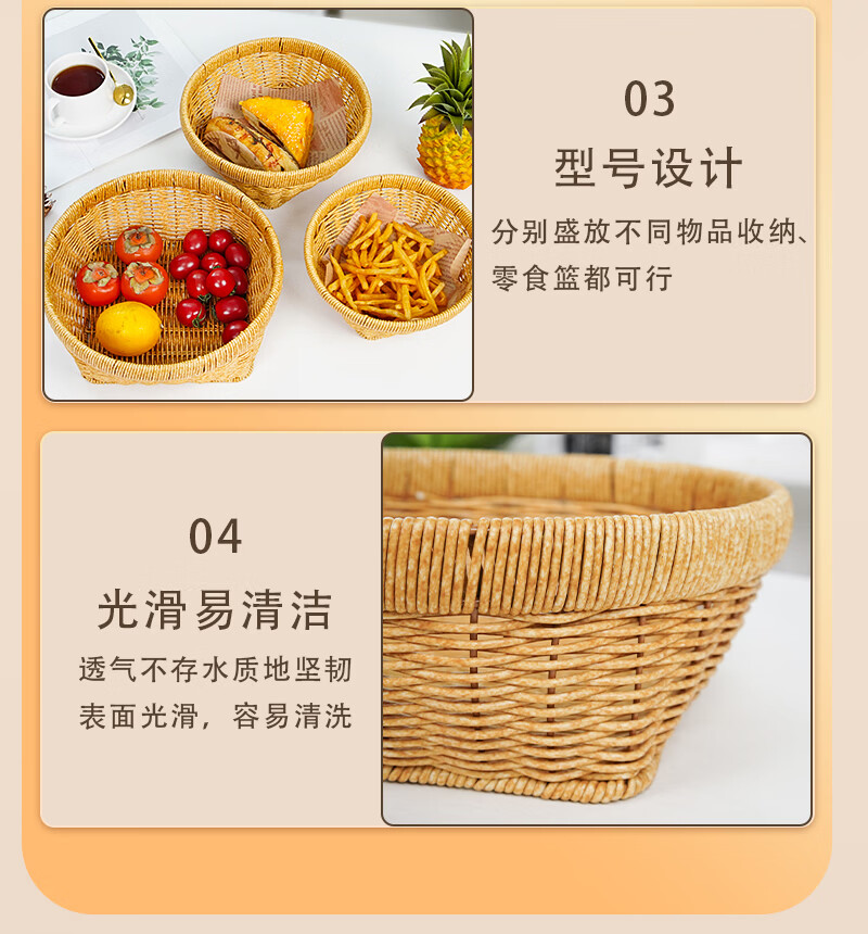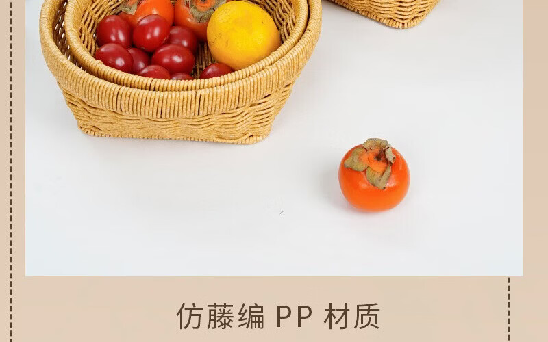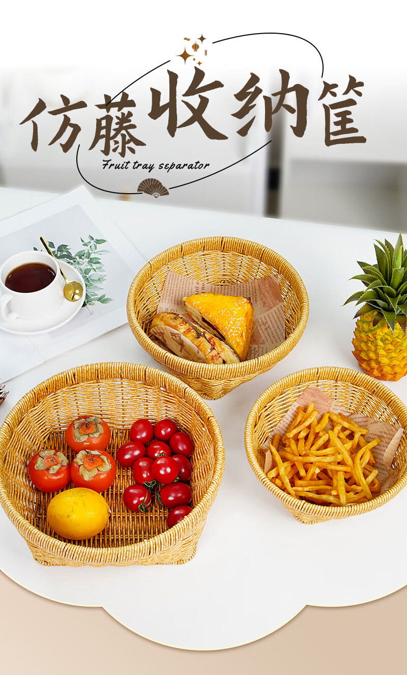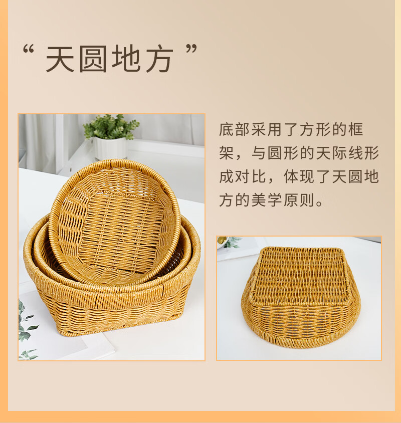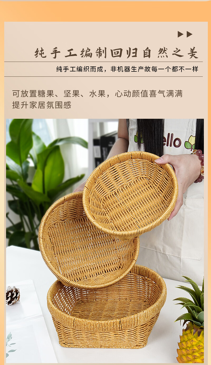 兴泰旺仿藤编织筐零食水果篮收纳方底圆口筐家庭用水果盘草编馒头筐托盘 方底圆口筐 大号 27*20*10cm G646-001