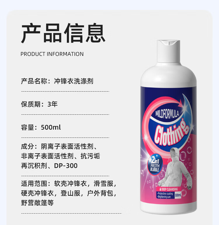 洁护雅滑雪服专用清洗剂去油污中性洗涤剂骆驼伯希和冲锋衣清洁剂洗衣液 【一瓶装】