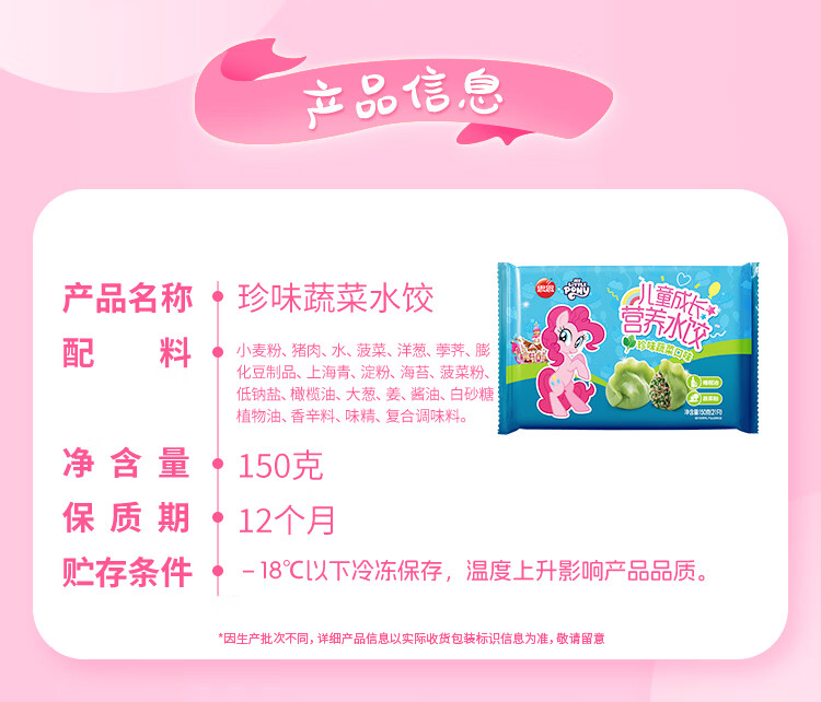 思念多种类联名水饺组合(加购58选5件)11种产品任选 思念150g小马宝莉儿童珍味蔬菜水饺*1 思念暖冬组合