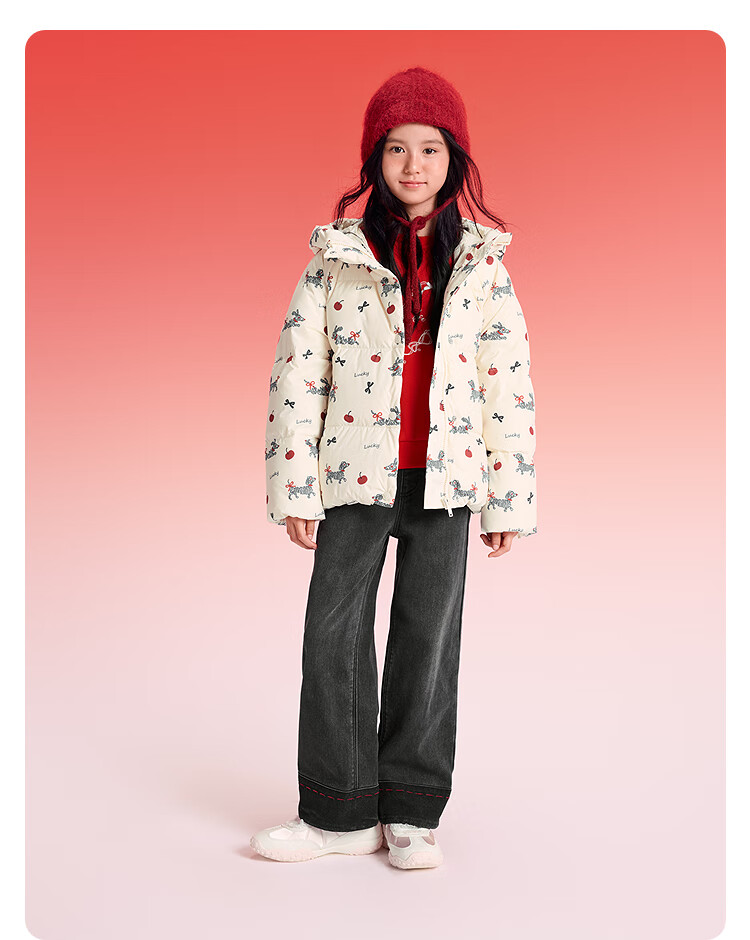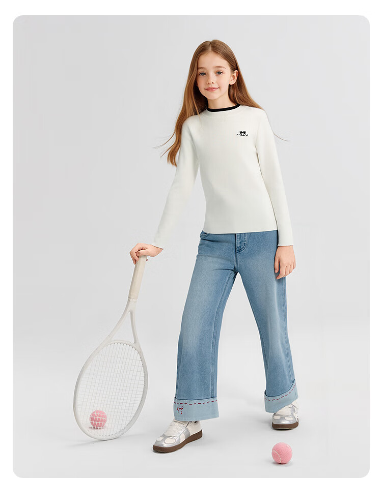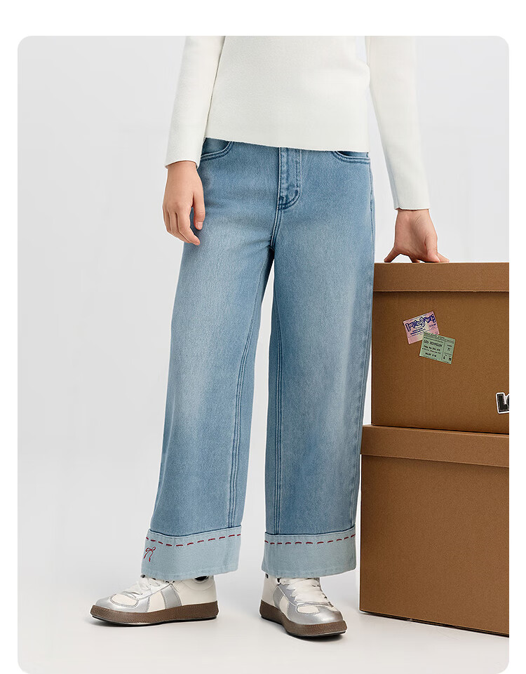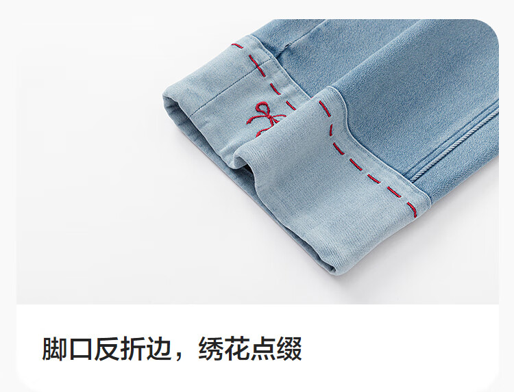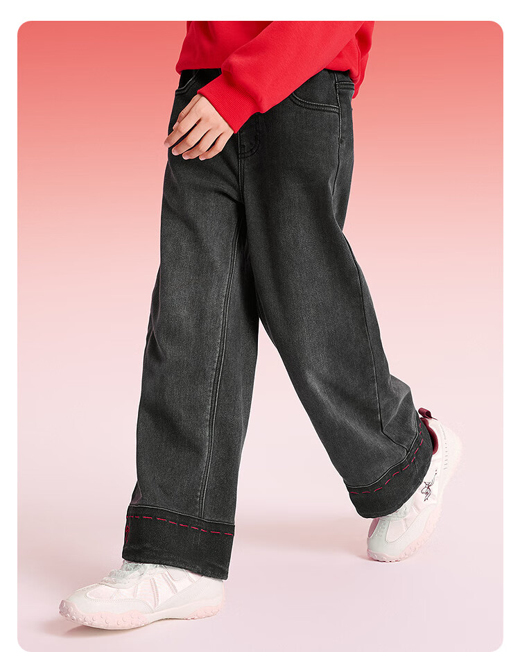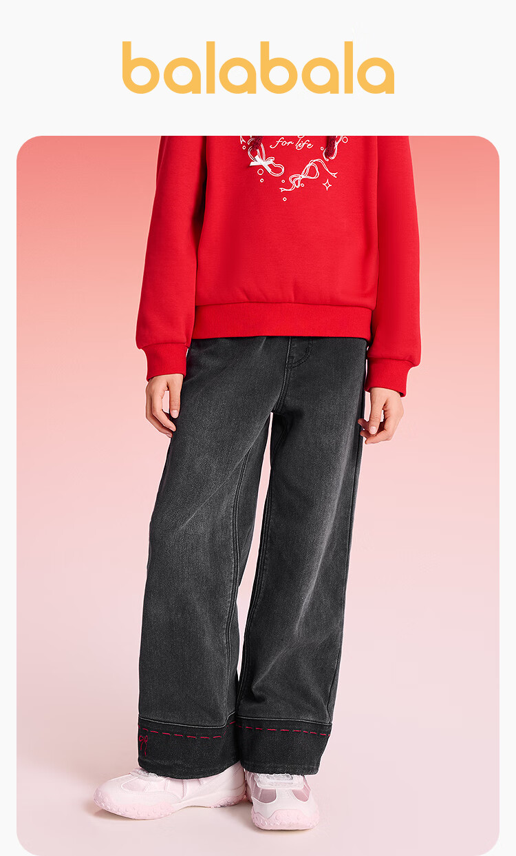 巴拉巴拉【balaOne】童装女童春秋牛仔裤直筒宽松红色新年拜年长裤