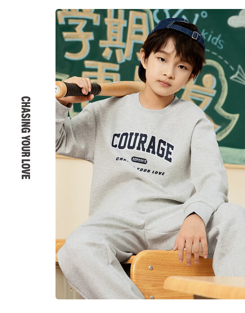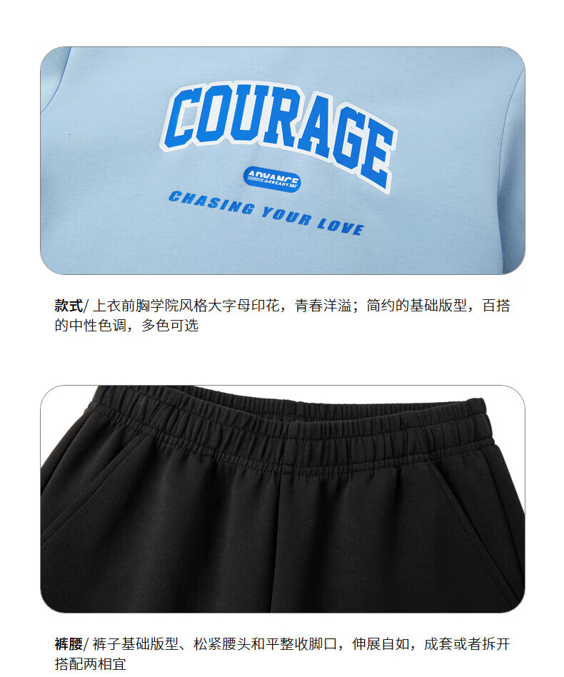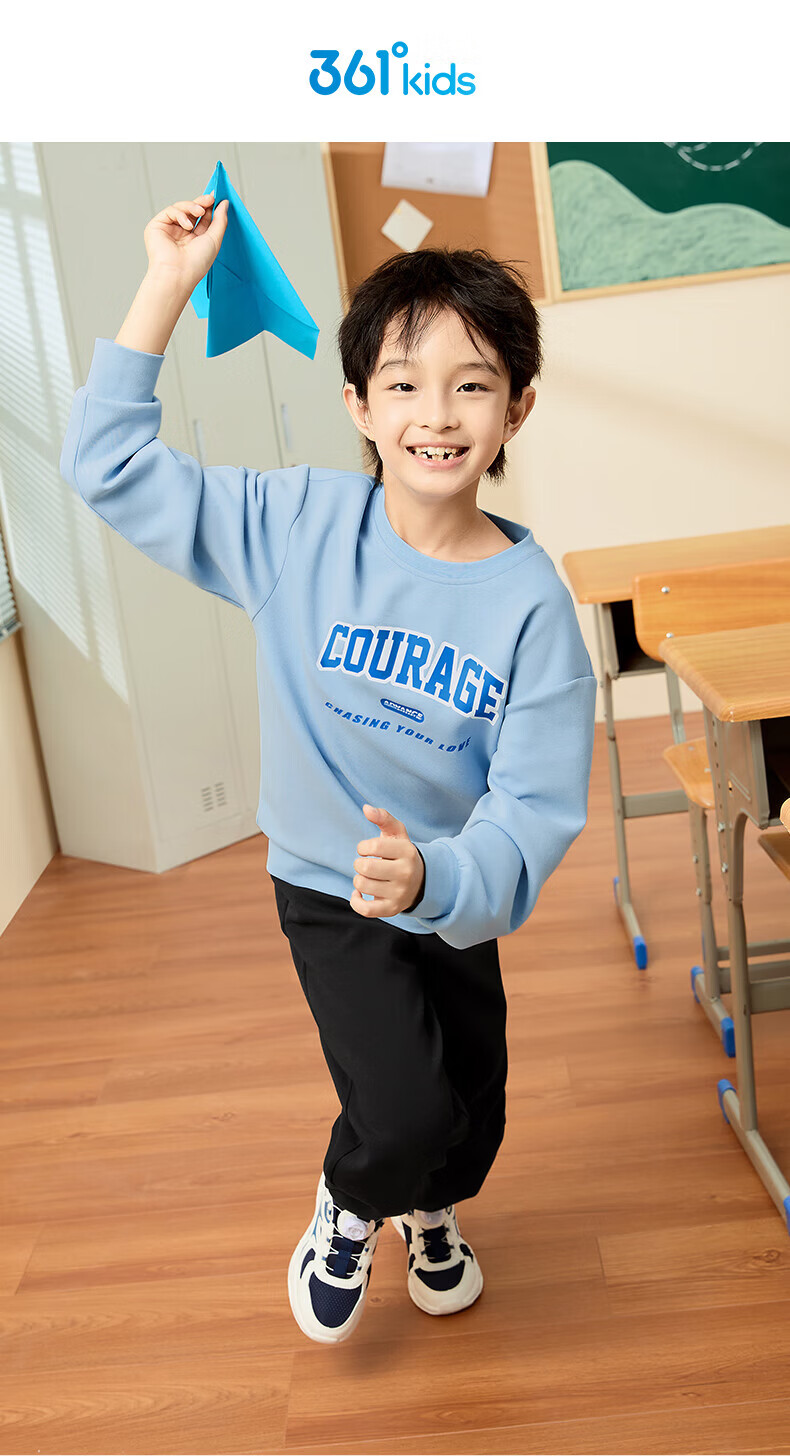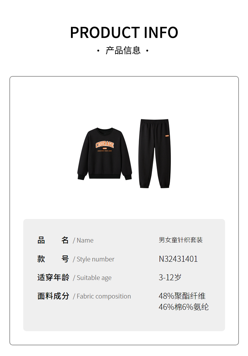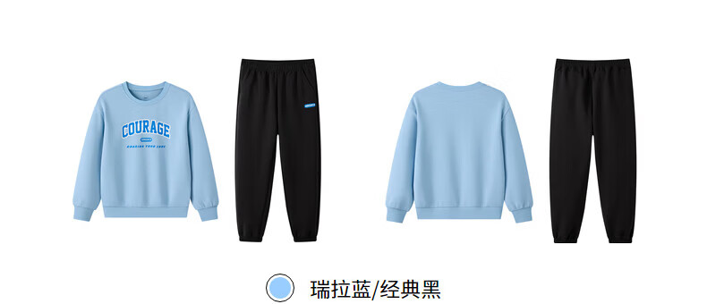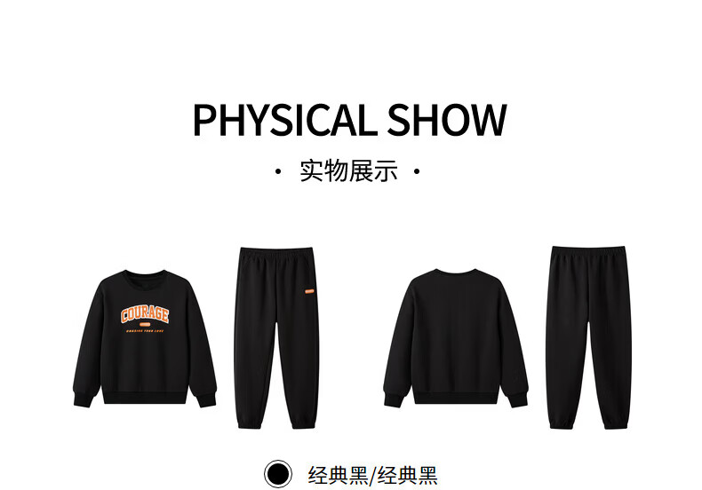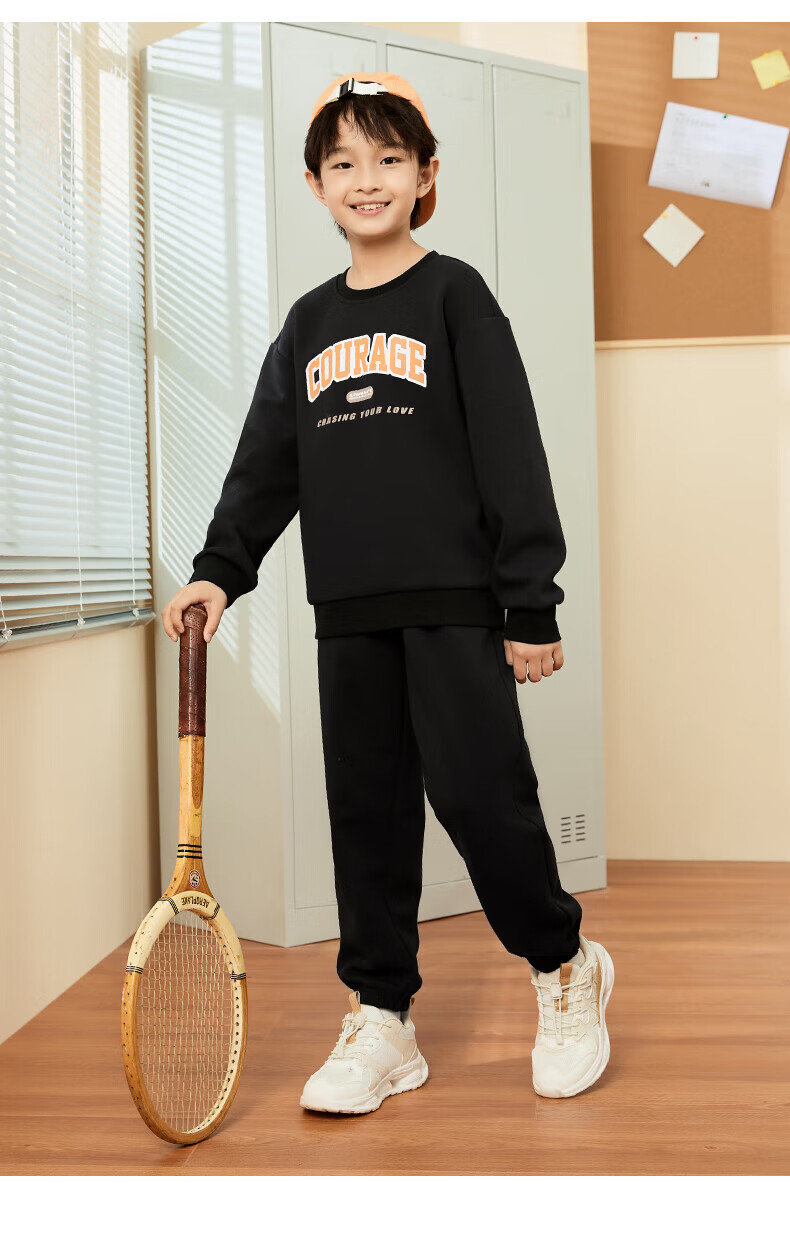 361°童装男童长袖针织套装儿童百搭年春秋新款女童圆领运动套装 经典黑/经典黑 110 cm