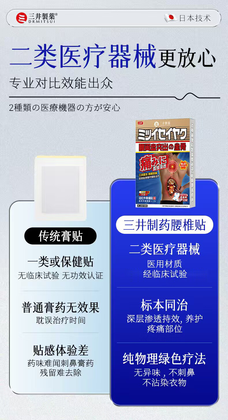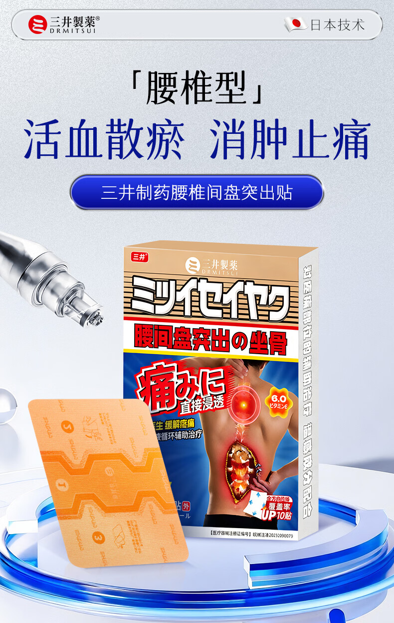 三井制药远红外理疗腰椎间盘突出膏药贴腰肌劳损腰疼痛10贴/盒 买3送2【5盒周期装】85%选择