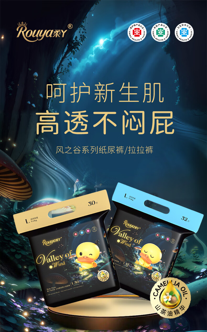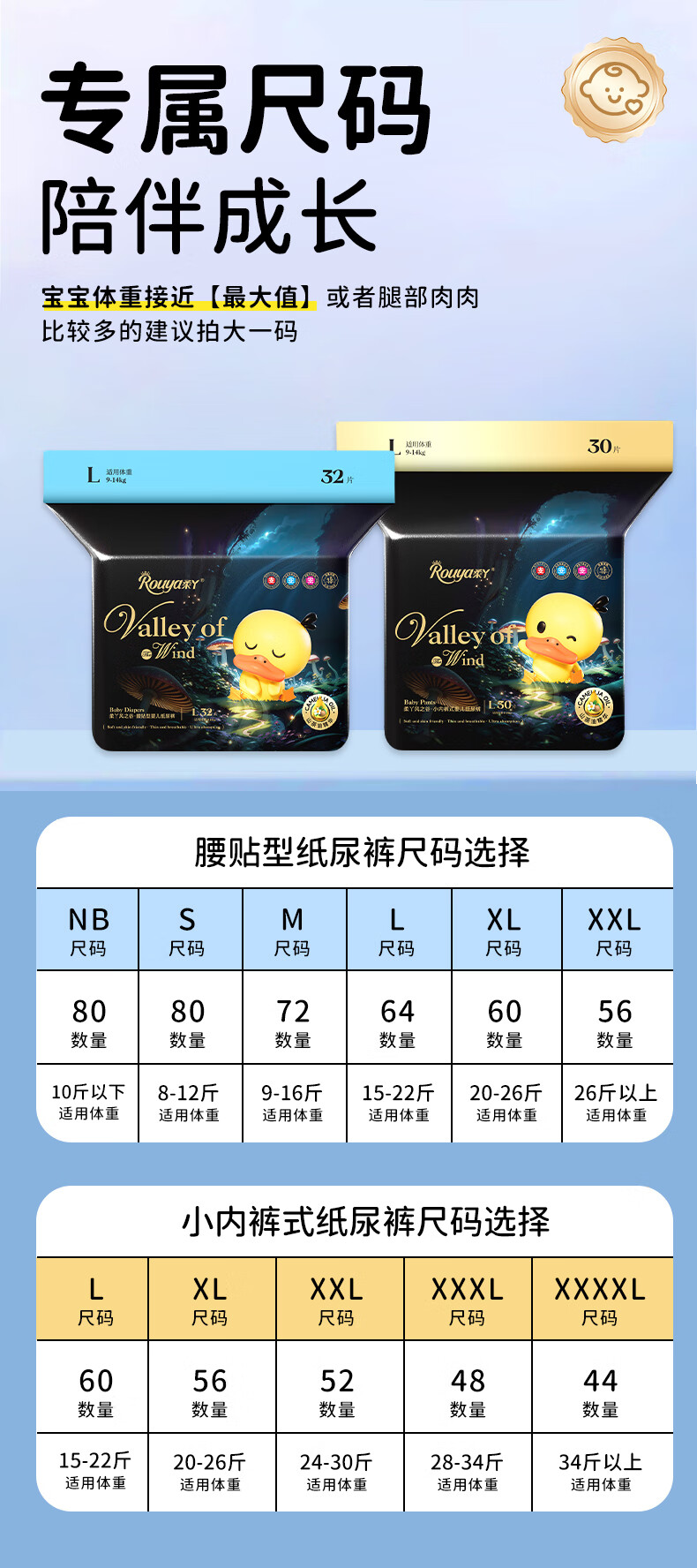柔丫风之谷轻薄夜用透气拉拉裤婴儿高透小桃干爽柔软纸尿布尿不湿试用 4XL 2包 44片 【拉拉裤>34斤】 *升级风透黑科技