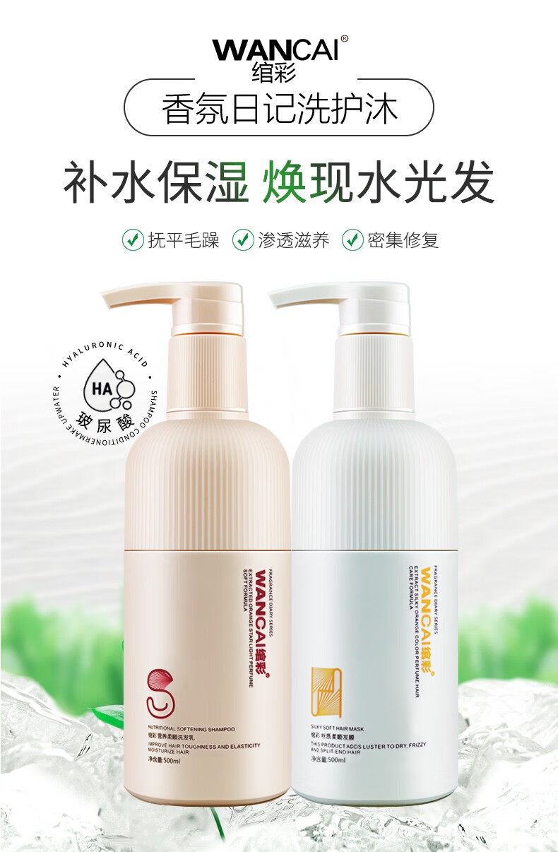 绾彩(WANCAI)香氛日记香水清爽洁净洗发乳 营养柔顺洗发乳750ml【2瓶装】
