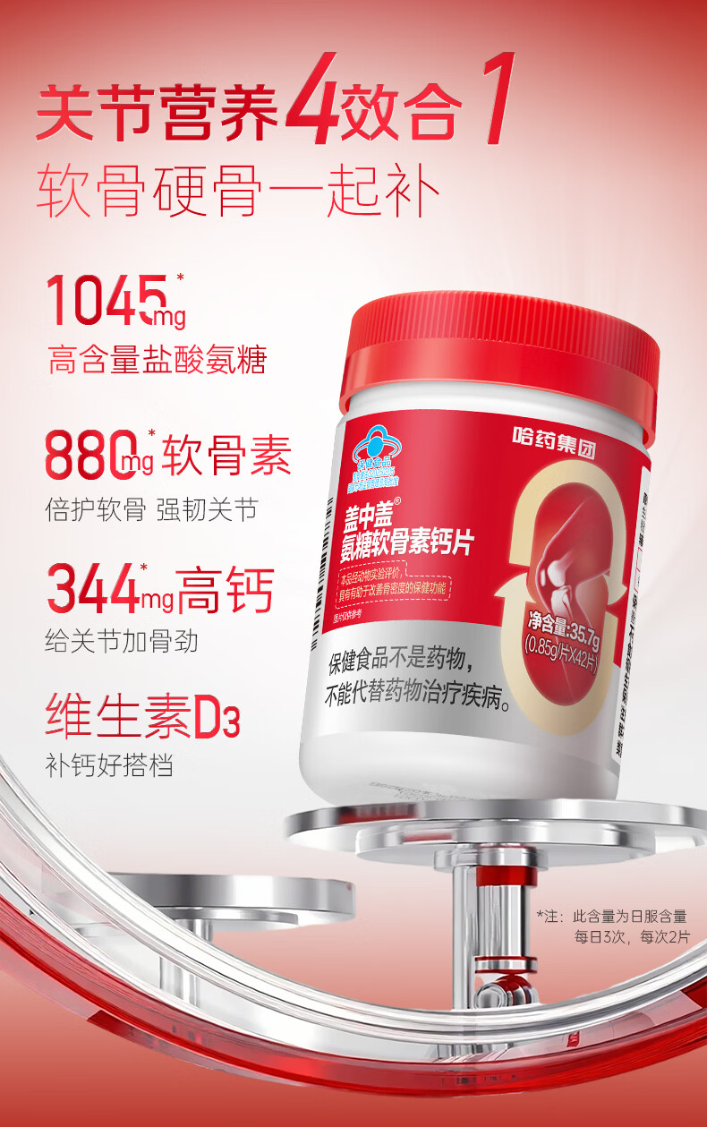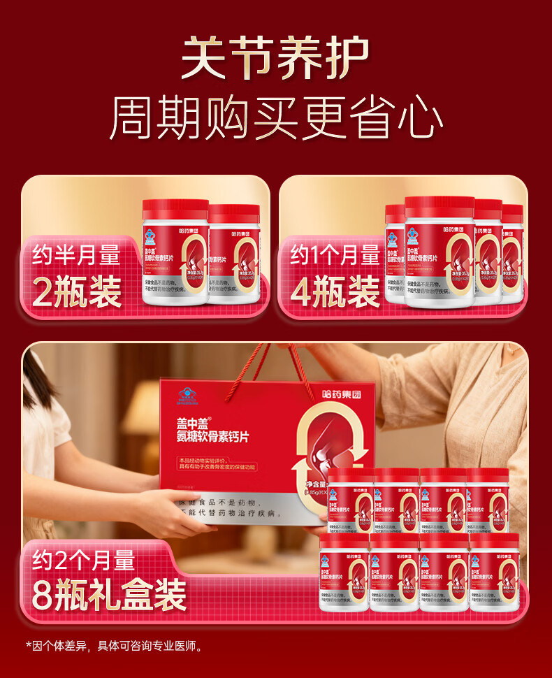 新盖中盖哈药 四合一氨糖软骨素钙片 中老年补软骨护关节 送礼礼盒 42片*8瓶