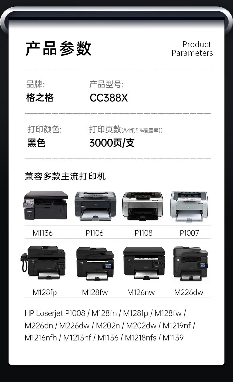 格之格CC388X硒鼓 388a硒鼓适用惠普m1136硒鼓 cc388a硒鼓 hp m126a硒鼓p1108 p1007 p1008 m128fn p1106硒鼓大容量