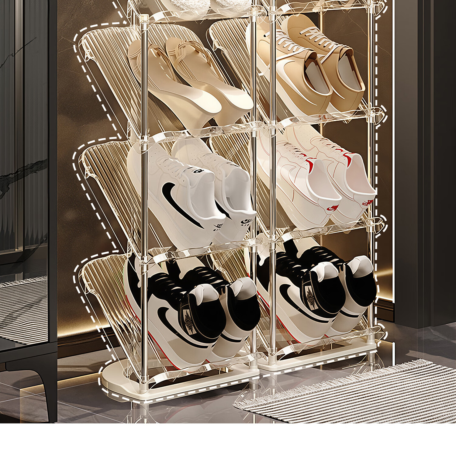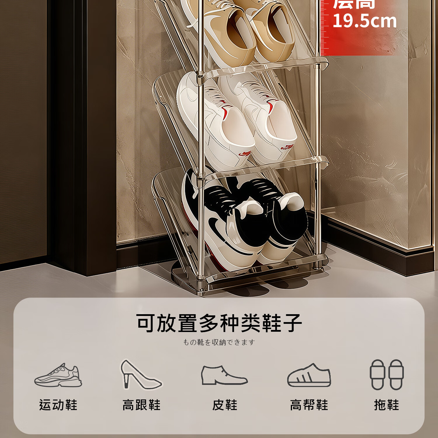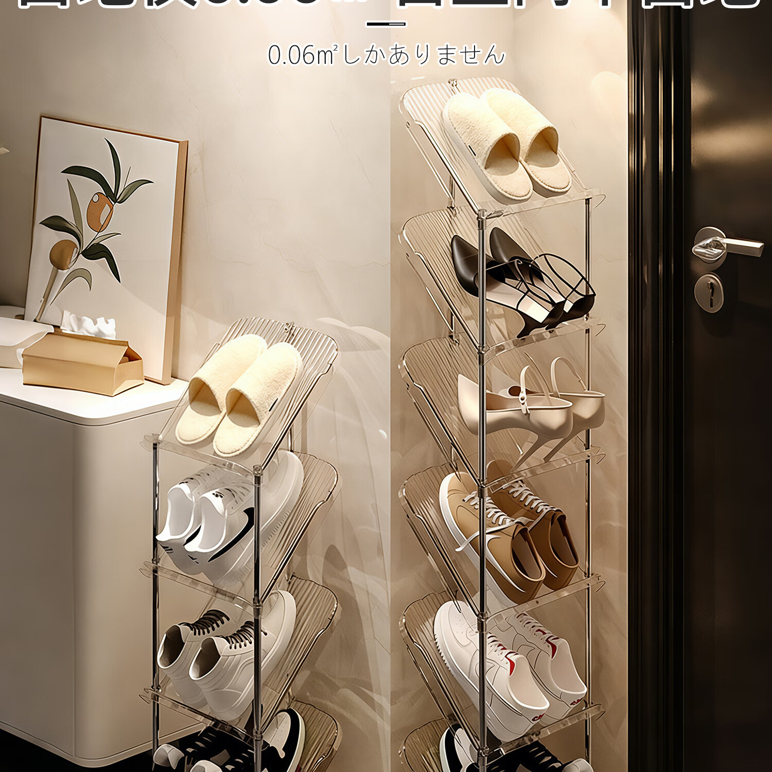 吱凡日本简易鞋架家用门口拖鞋多层小型入户门后极窄鞋子收纳神器鞋柜 【2层】高43cm 琉璃透【稳固不晃丨散架包赔】