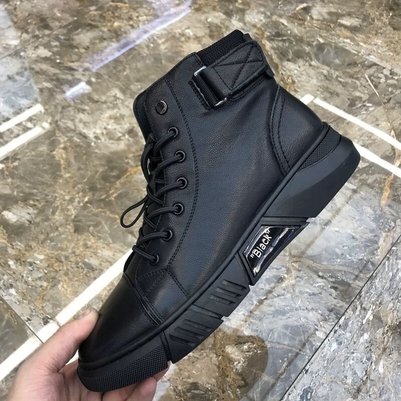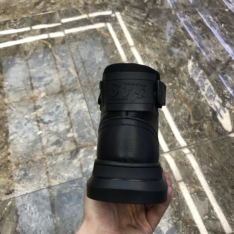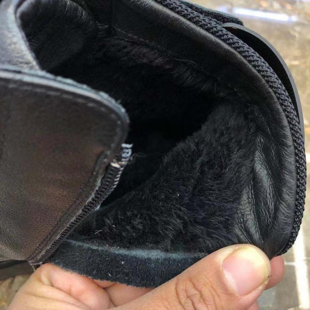 稻草人(MEXICAN)纯牛皮马丁靴男冬季真皮高帮棉鞋皮毛一体棉皮鞋加绒保暖雪地靴男 7066黑色【不加绒】 38