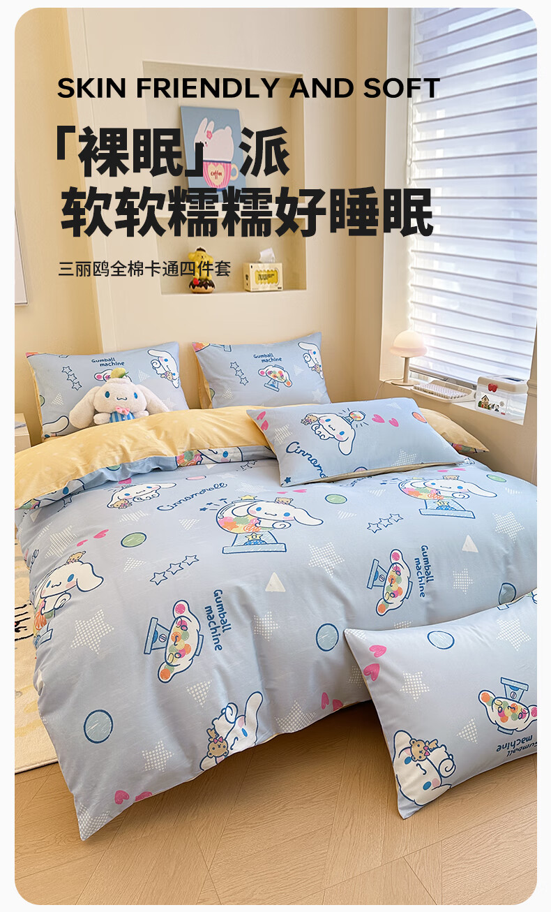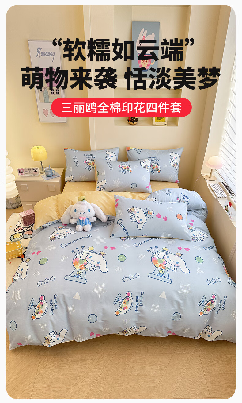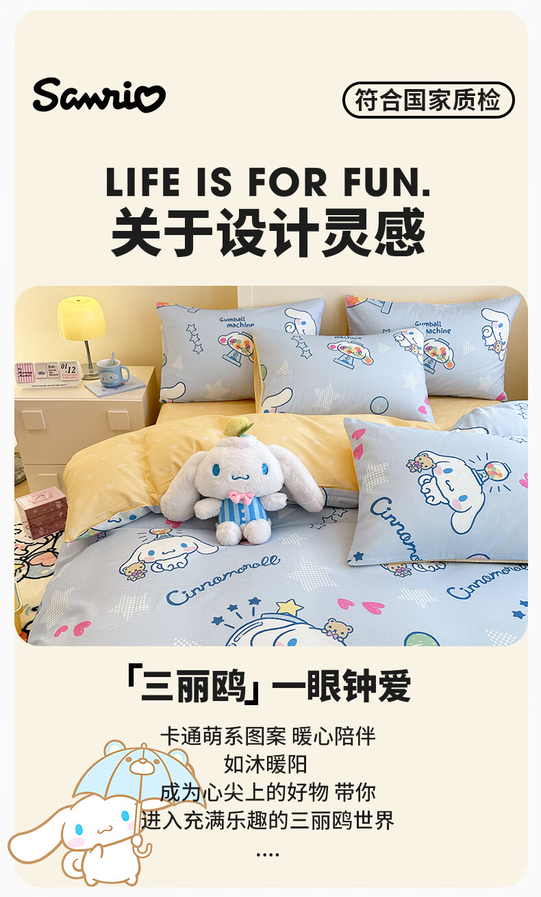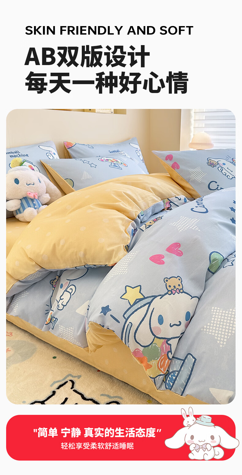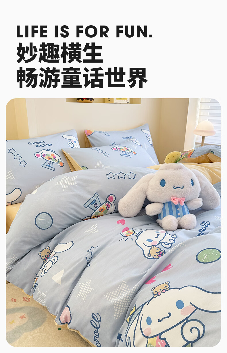 名创优品三丽鸥纯棉床上四件套 全棉被套床单学生宿舍床品三件套 MINISO-星空玉桂狗 0.9 床单款 三件套(被套150*200cm)