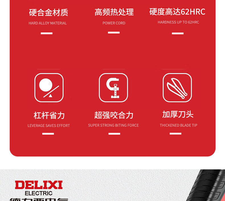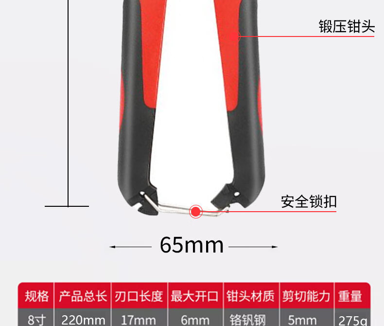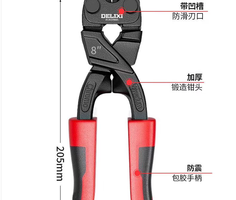 德力西电气(DELIXI ELECTRIC)断线钳省力剪钢丝钢筋锁专用大力鹰嘴钳子铁链工具剪 【常规款】断线钳8寸