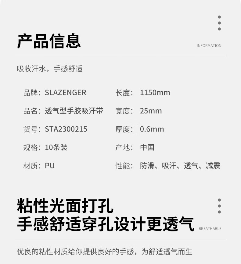 史莱辛格(Slazenger)羽毛球拍网球拍手胶 防滑透气性吸汗带10个装STA2400415
