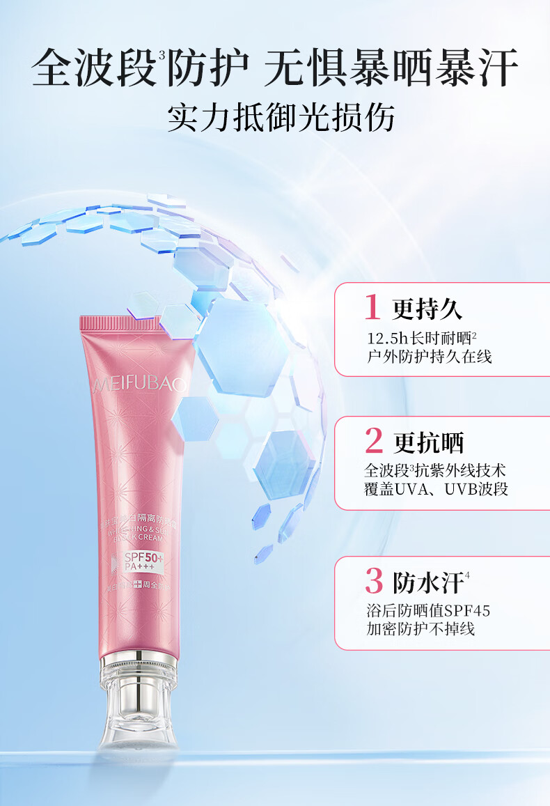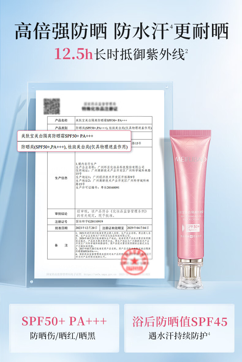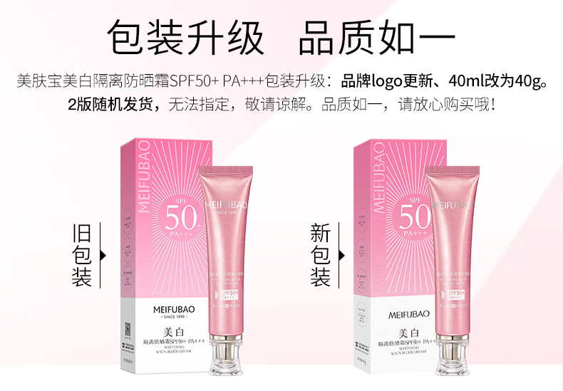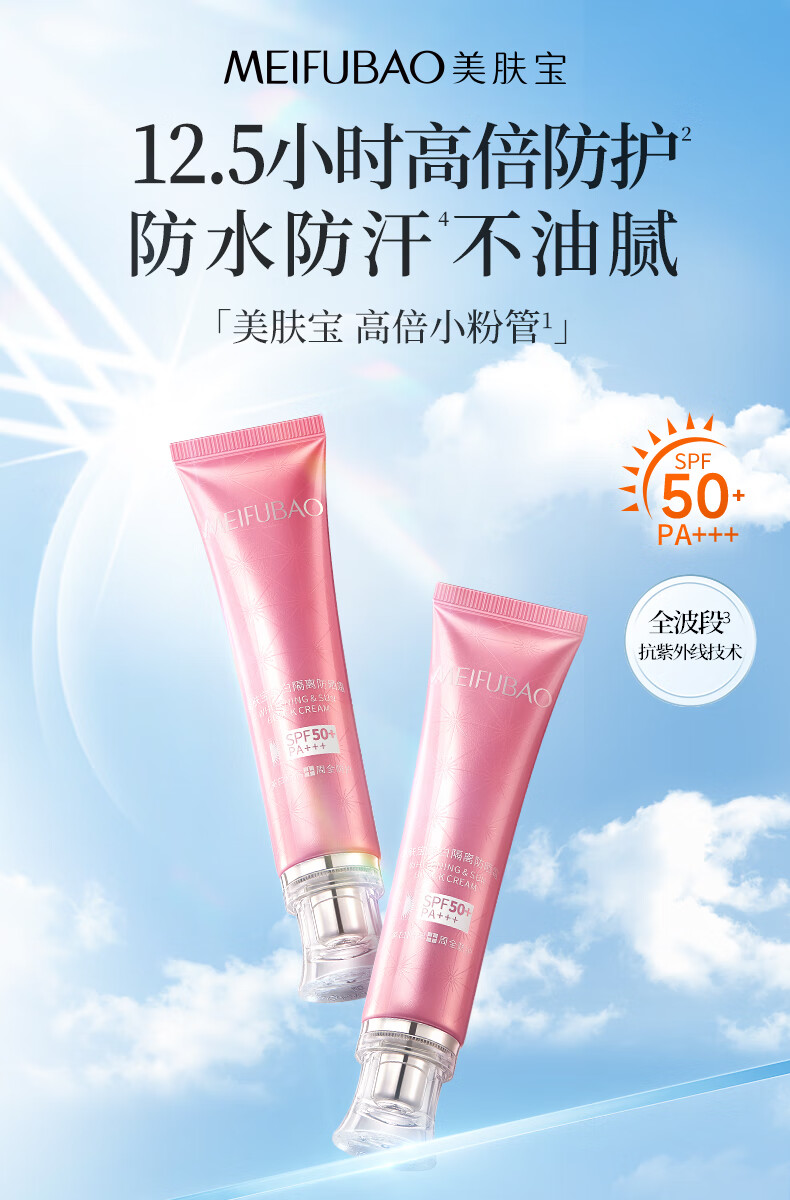 美肤宝美白隔离防晒霜SPF50+小粉管40g提亮遮瑕户外防水防汗新年礼物
