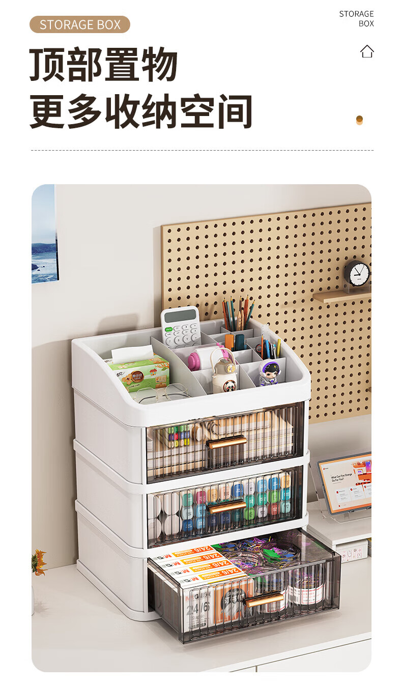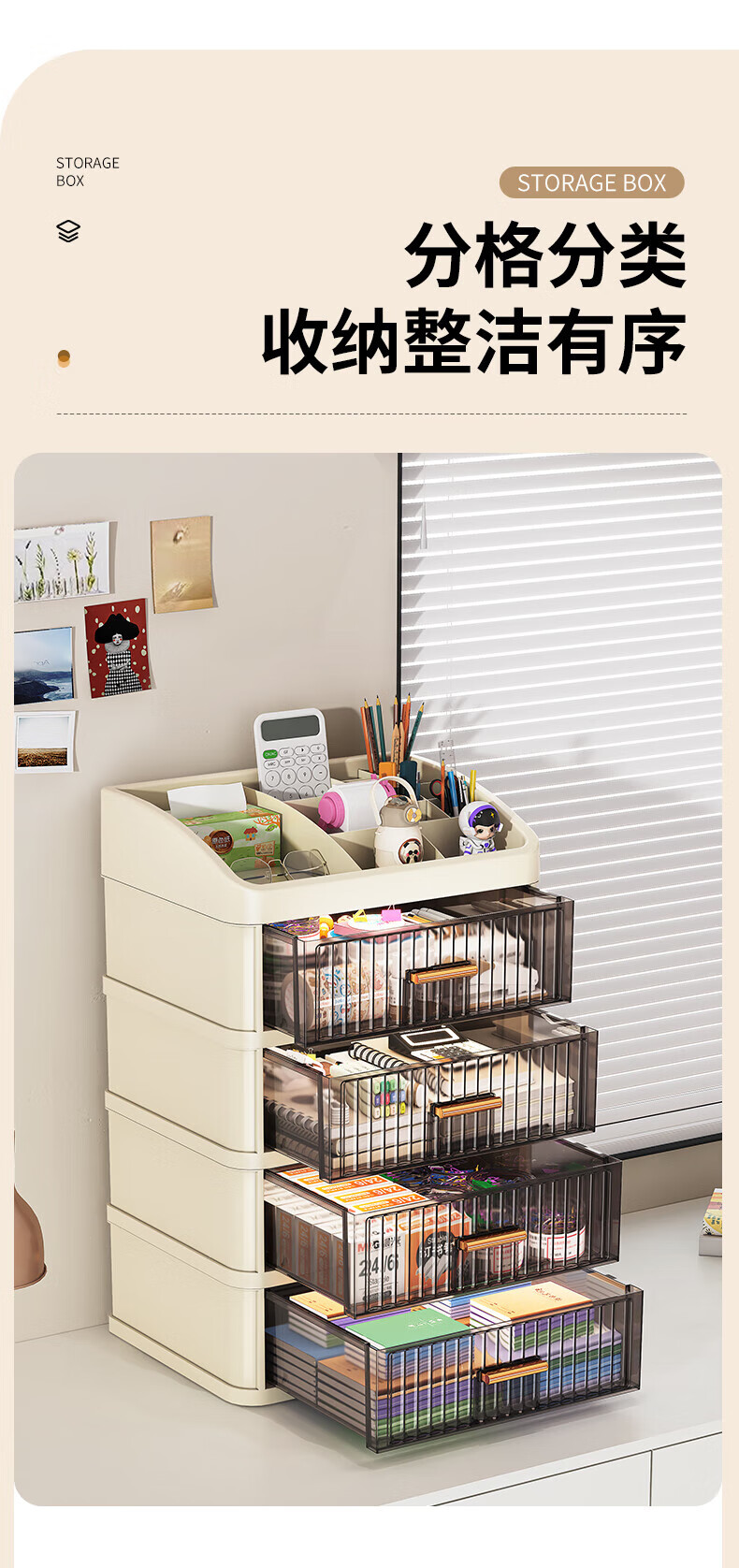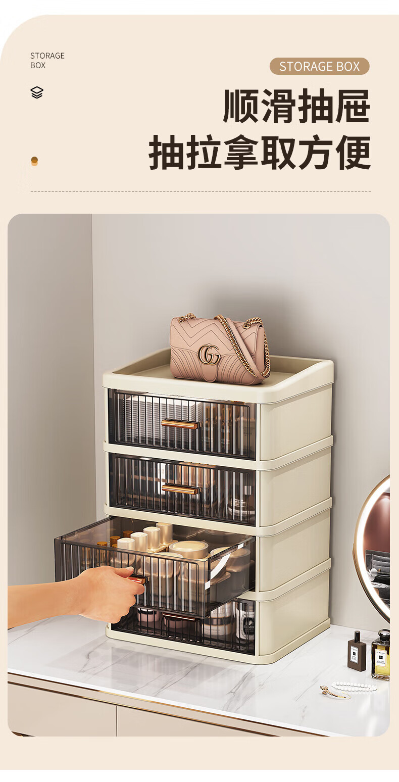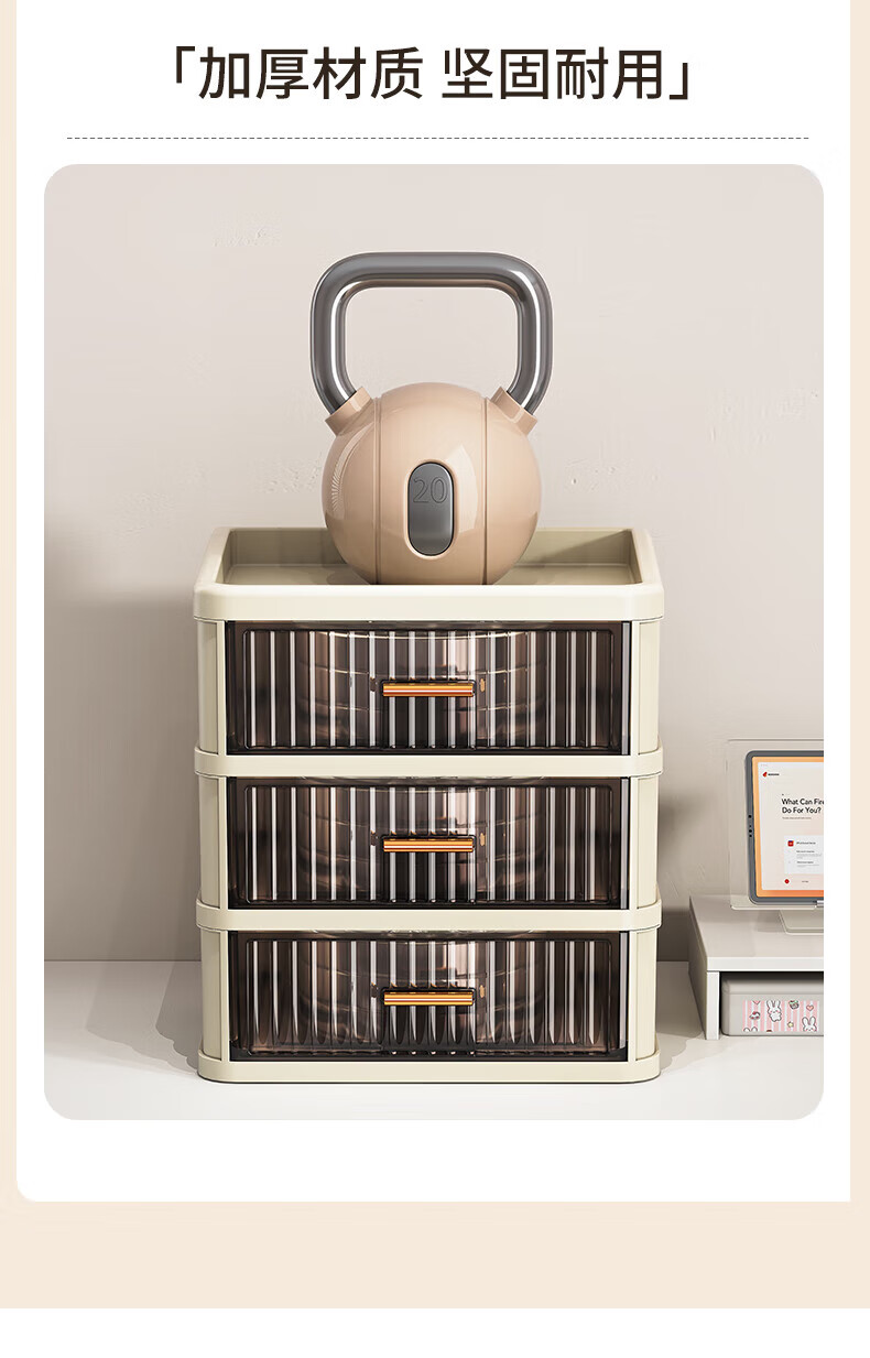 铂呐苓抽屉式桌面收纳盒办公室书桌整理文具神器化妆品置物架储物柜盒子 24*18*30cm 【3抽分格收纳盒-白色】