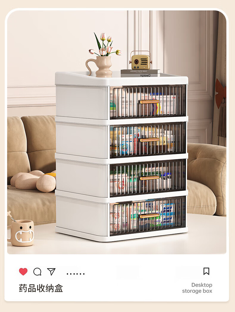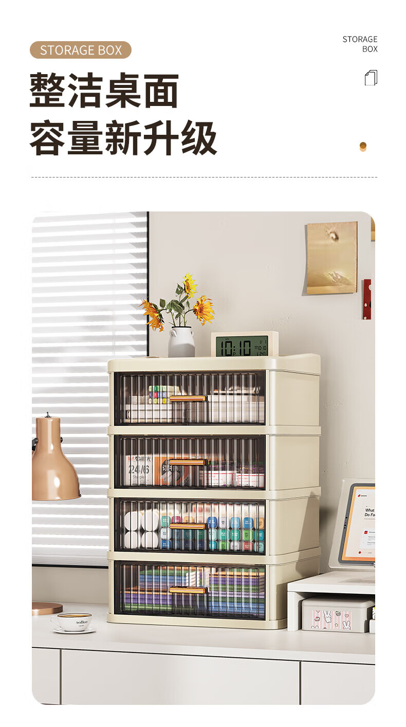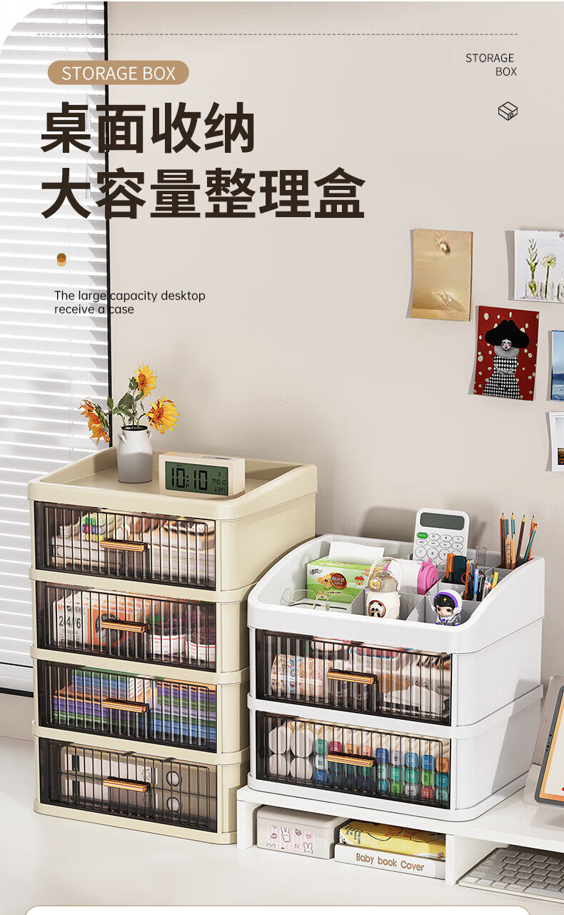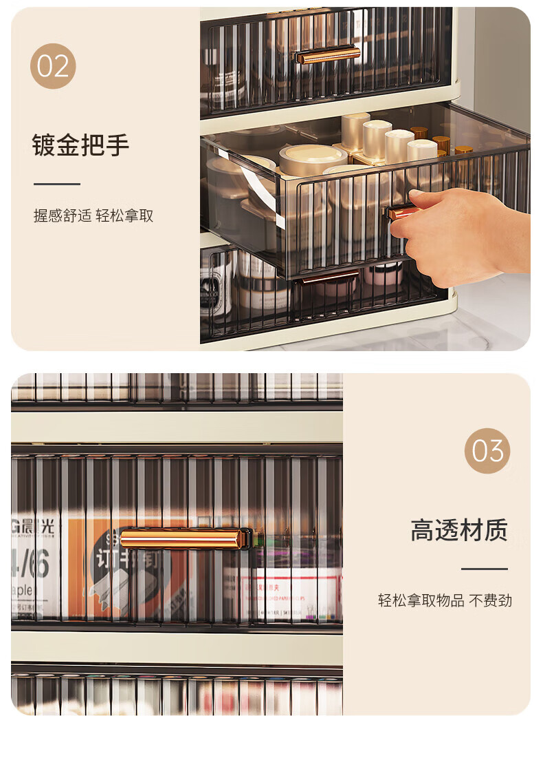 铂呐苓抽屉式桌面收纳盒办公室书桌整理文具神器化妆品置物架储物柜盒子 24*18*30cm 【3抽分格收纳盒-白色】