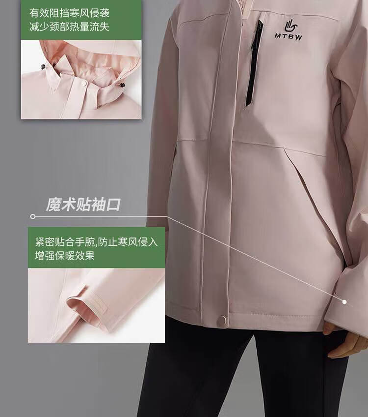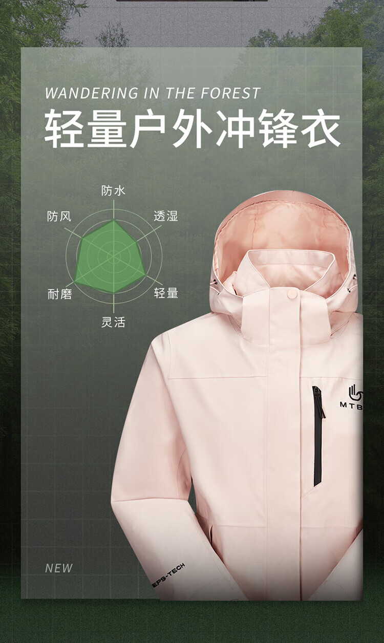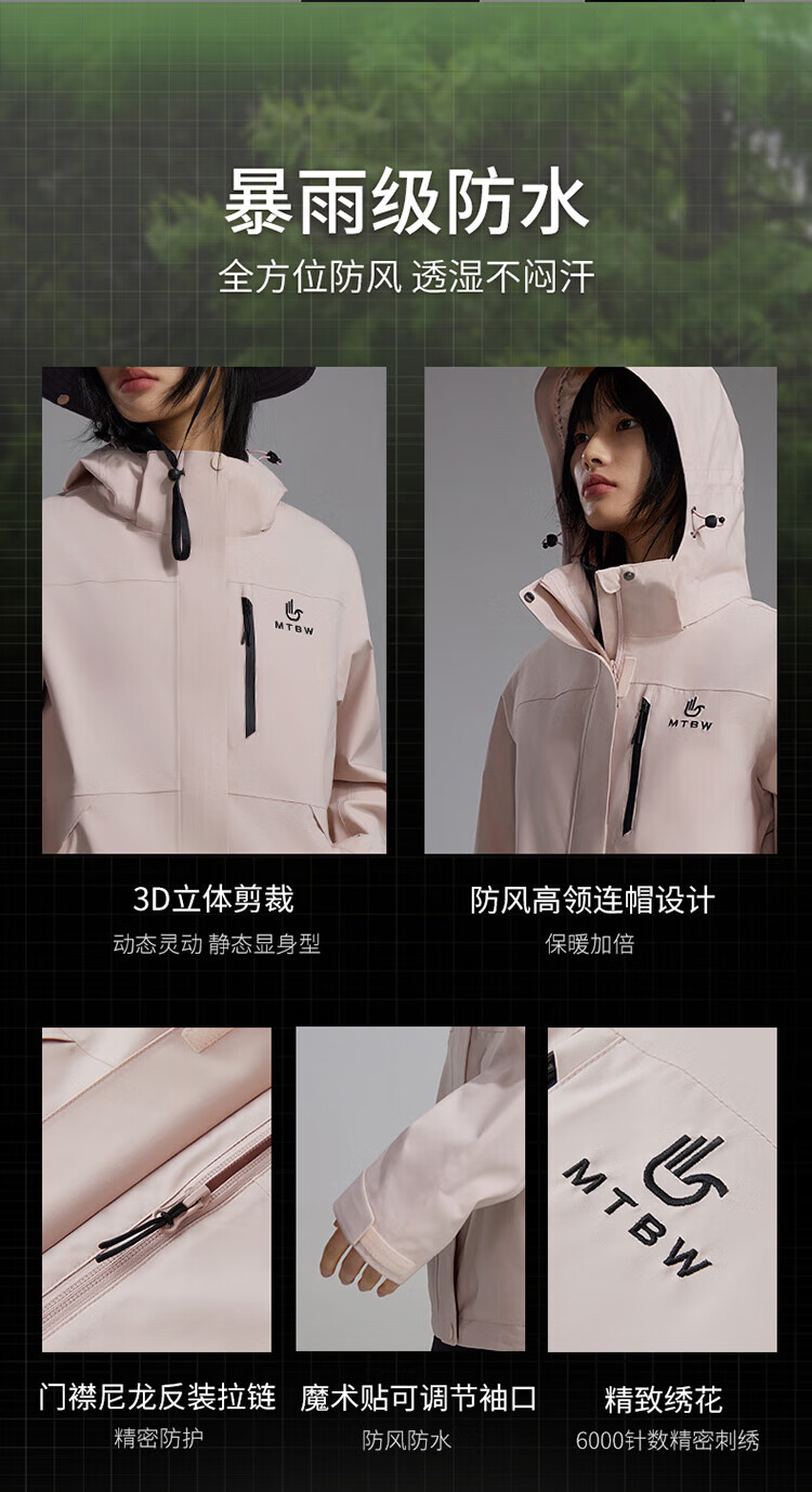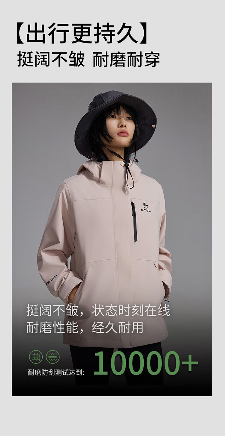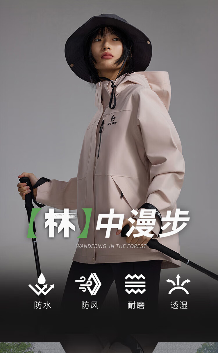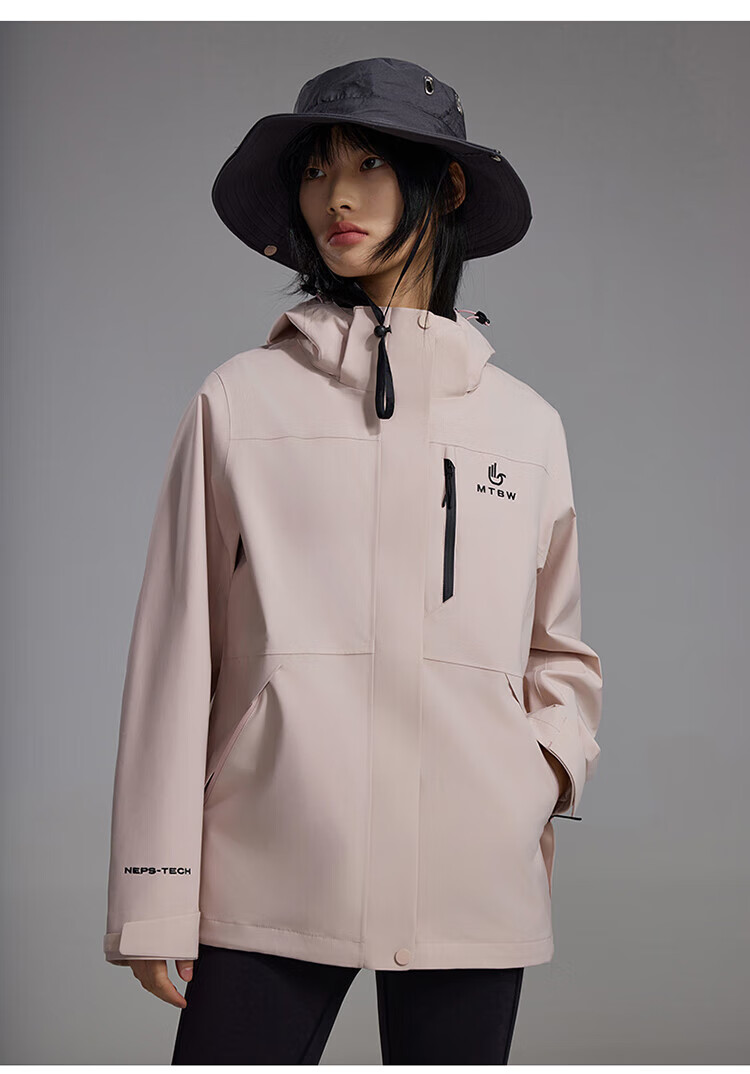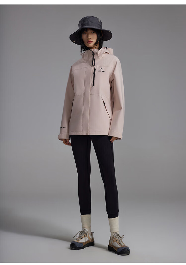 美特斯邦威【华夏之壳-林系列】冲锋衣女款25年春季新款户外三防登山服 粉色组 L 165 88A