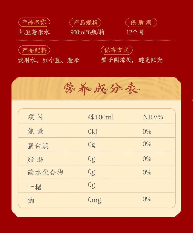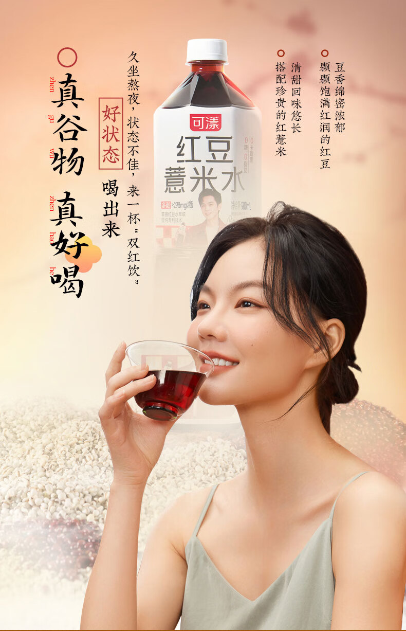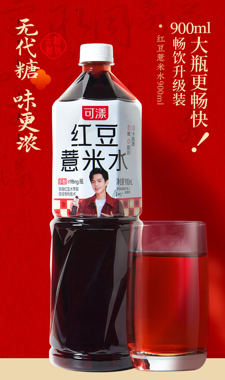 可漾 张若昀同款红豆薏米水0卡无脂肪运动薏仁无糖饮料900ml*6瓶 900毫升*6瓶装