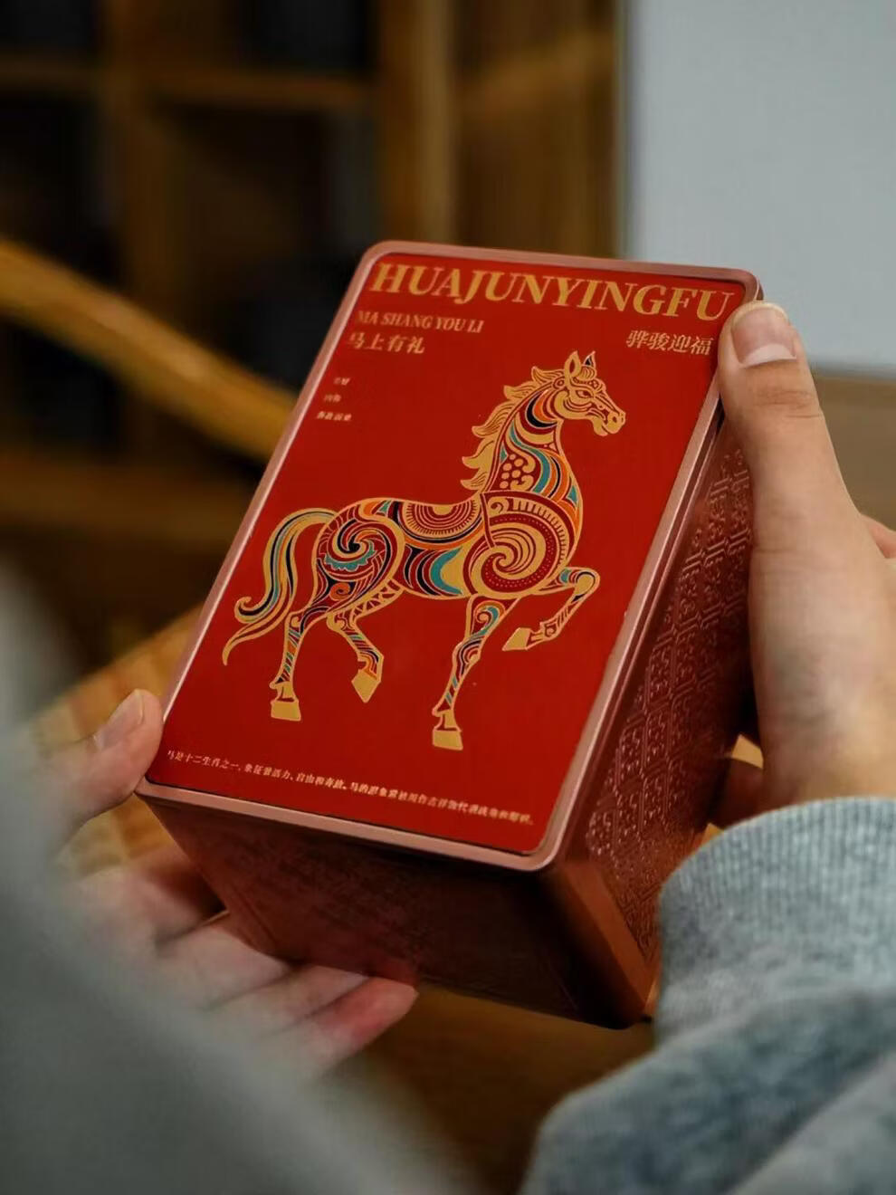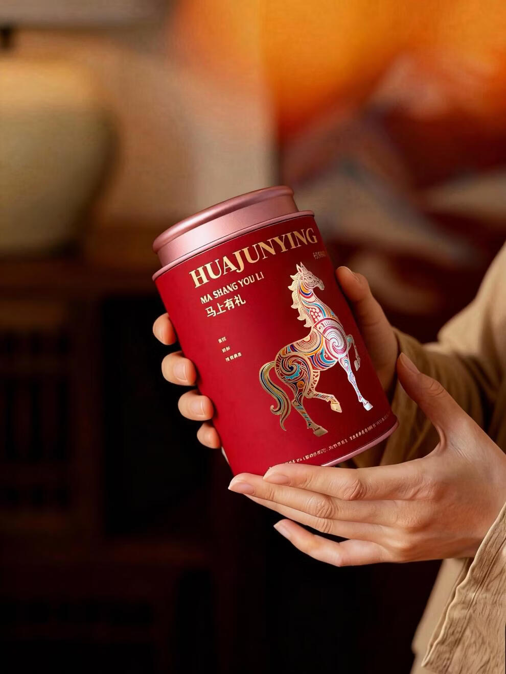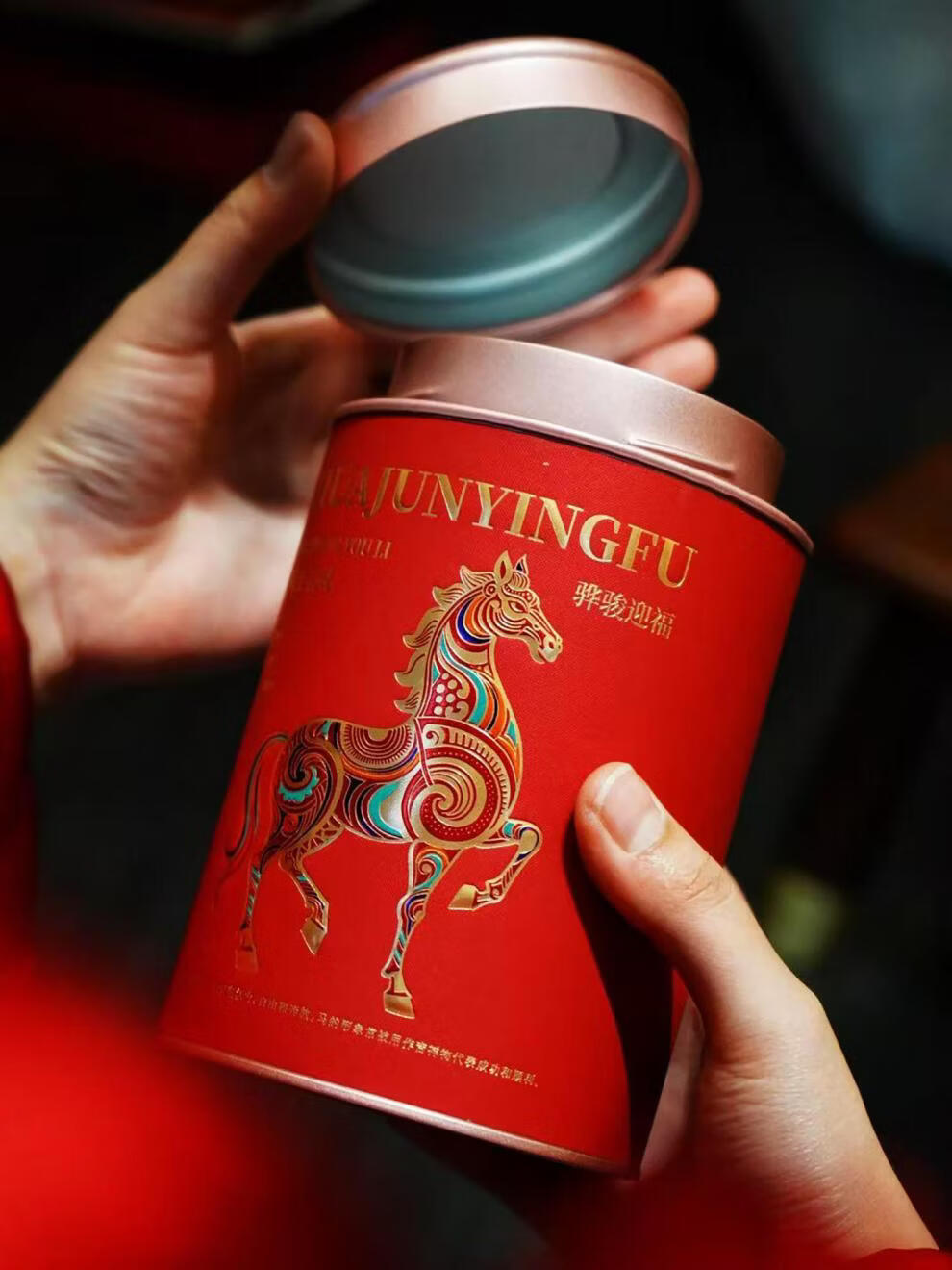 胖东来同款骐骥红马年茶叶罐春节茶叶礼盒装空盒红茶白茶岩茶普洱 红色-2圆罐 马上有礼