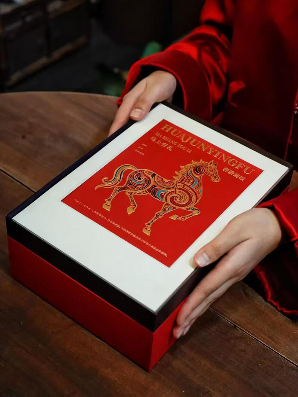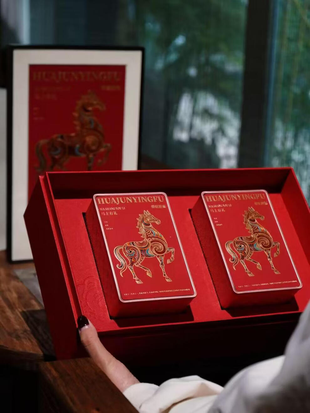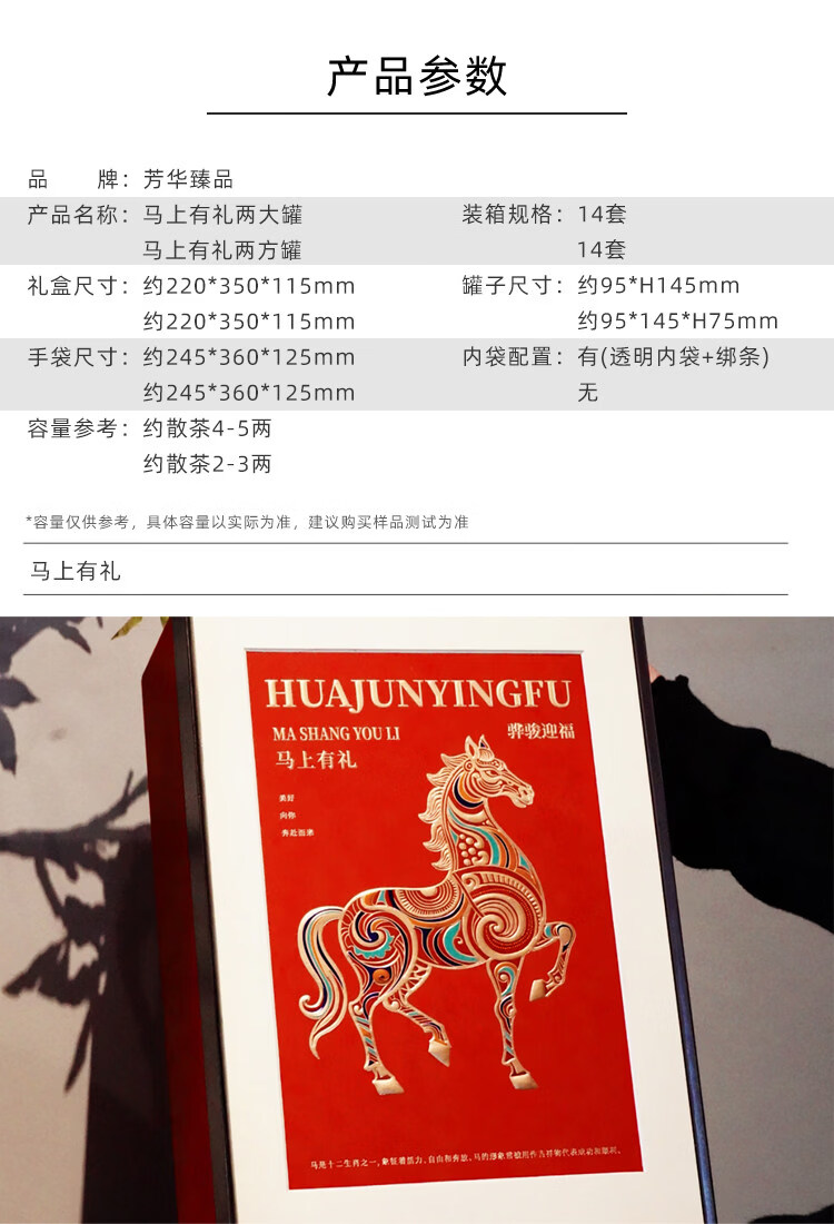 胖东来同款骐骥红马年茶叶罐春节茶叶礼盒装空盒红茶白茶岩茶普洱 红色-2圆罐 马上有礼