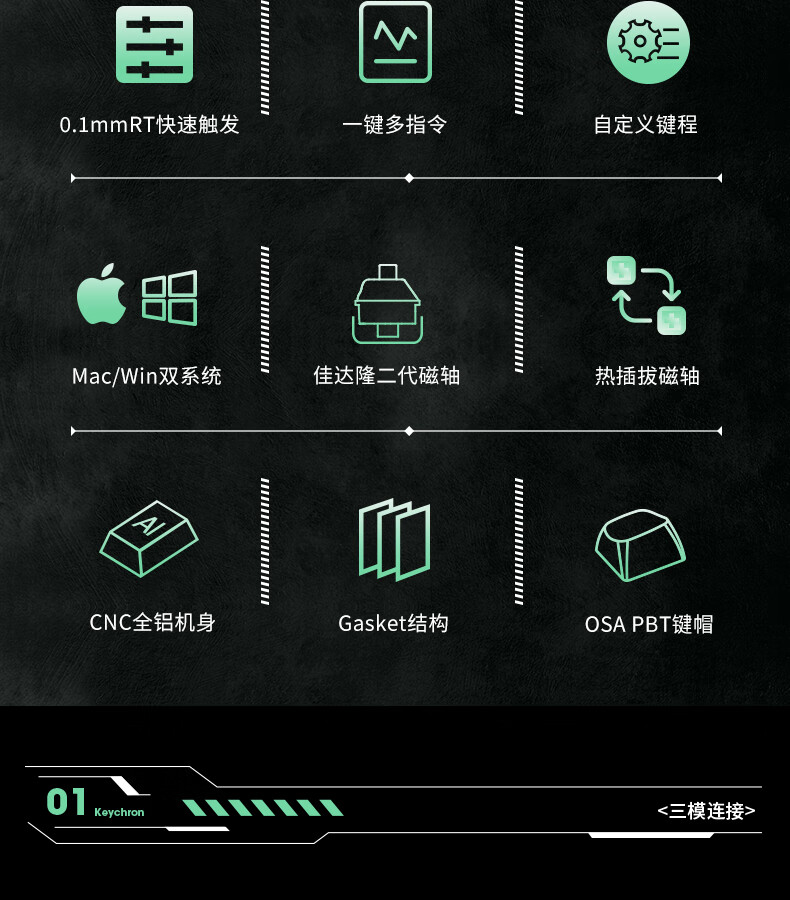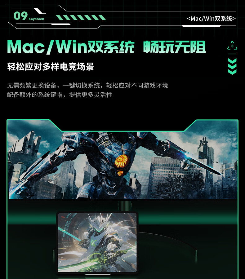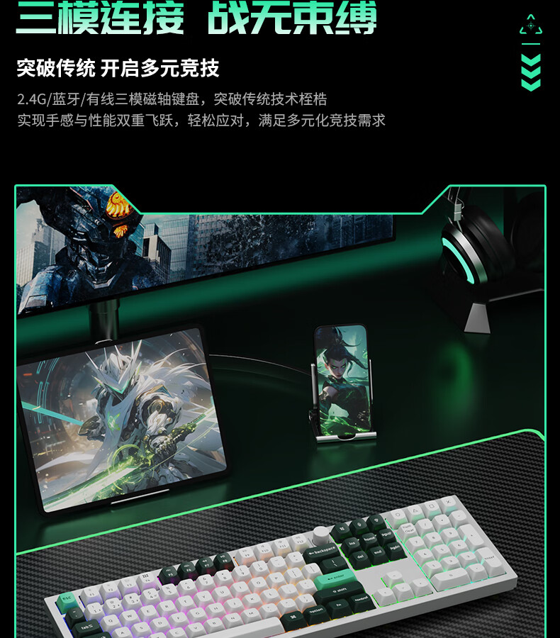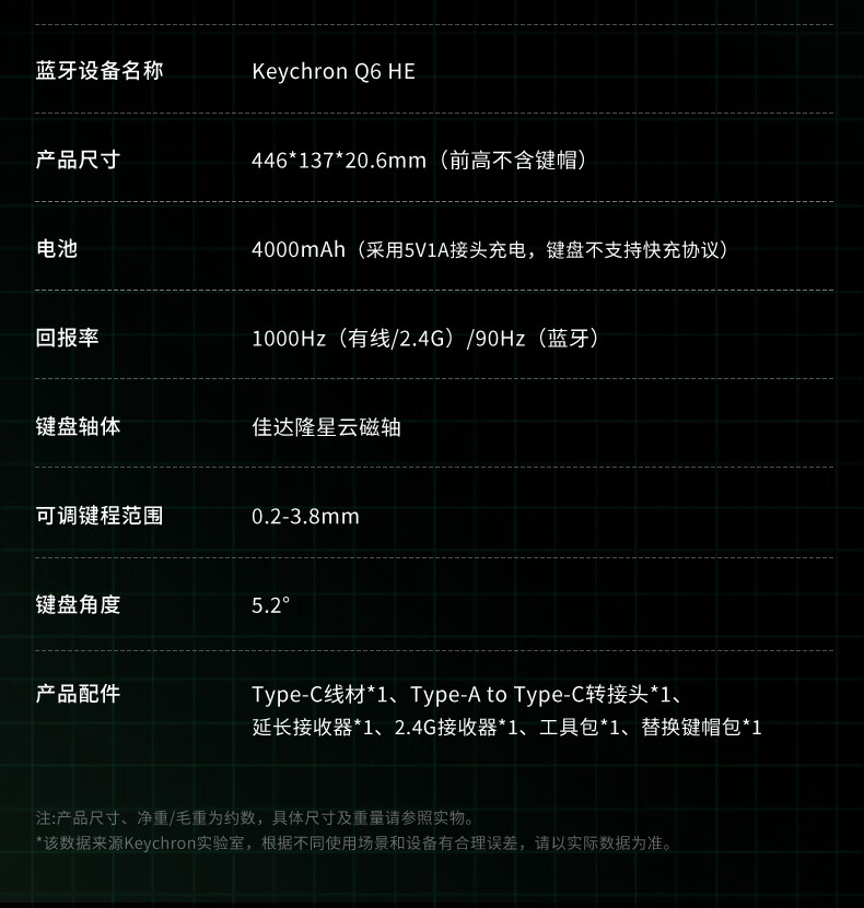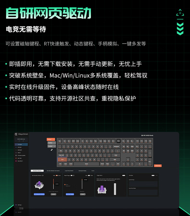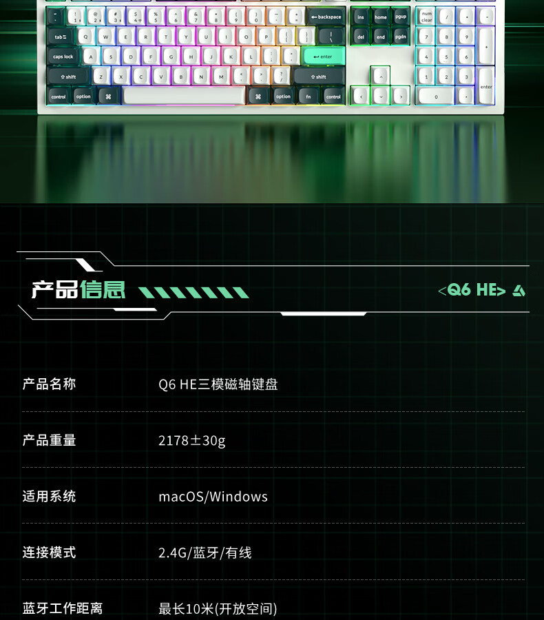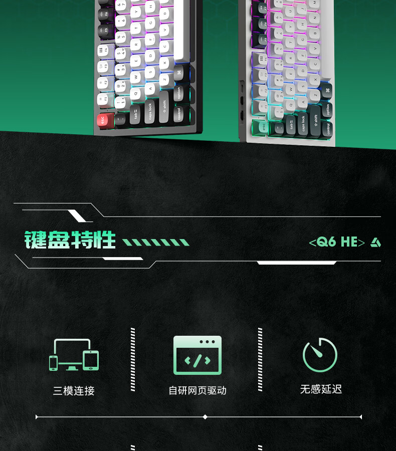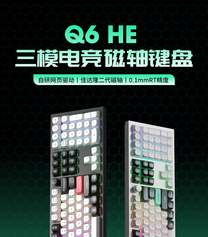 keychron渴创 Q6HE 磁轴键盘 电竞游戏键盘 无线三模键盘 客制化键盘 Mac键盘 在线网页驱动 游戏办公 Q6 HE RGB 热插拔 星云轴 旋钮版 黑色