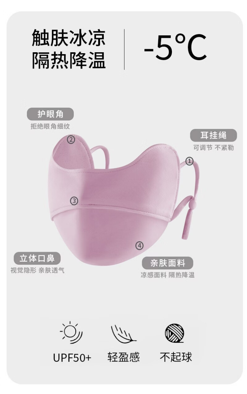 傲寒冰丝防晒口罩面罩夏季护脸骑行轻薄款透气女全脸防尘防风遮阳新款 黑色+粉色