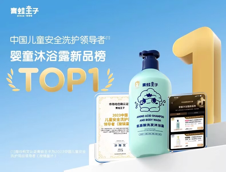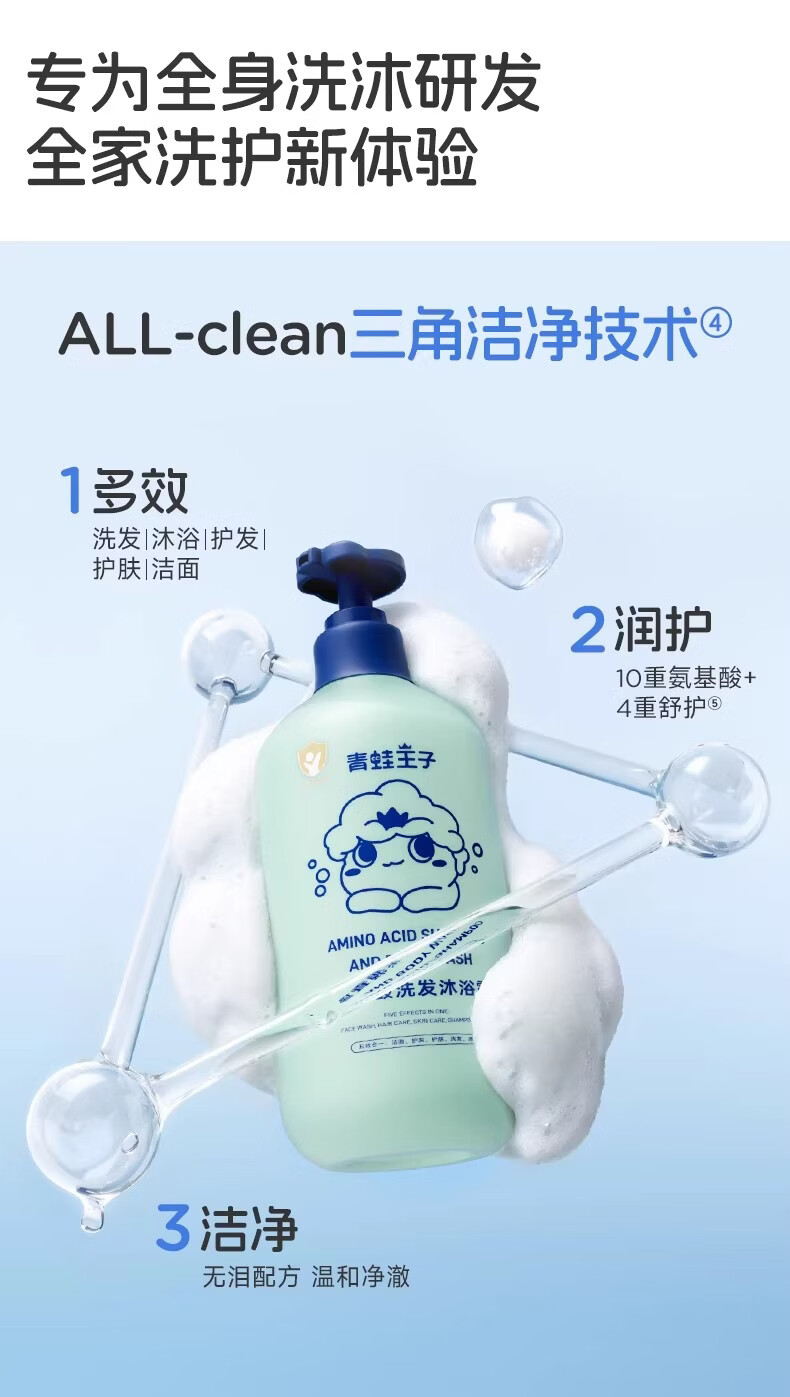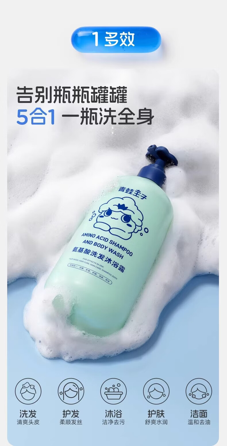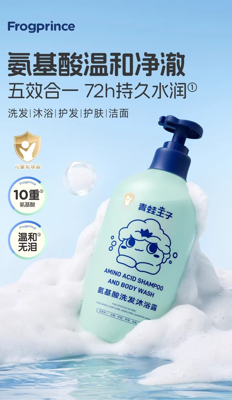 青蛙王子儿童婴儿洗发水沐浴露二合一 0-12岁宝宝洗头膏沐浴乳全家共享 【五效合一 温和无泪可洁面】洗发沐浴露1L