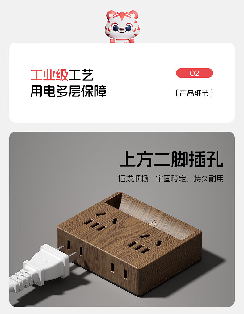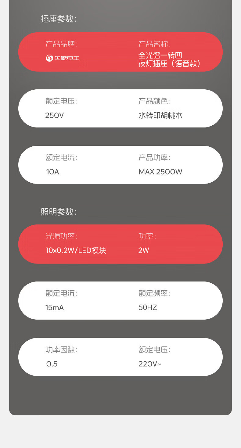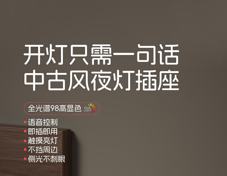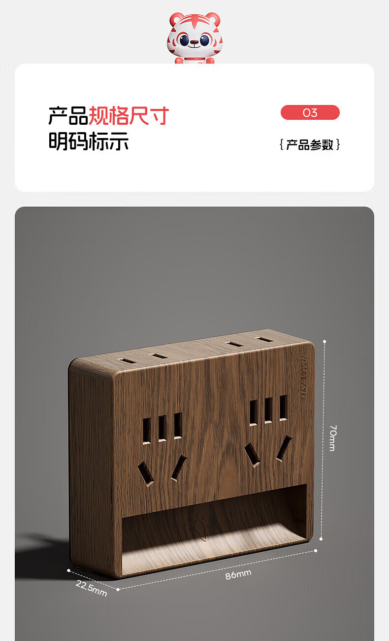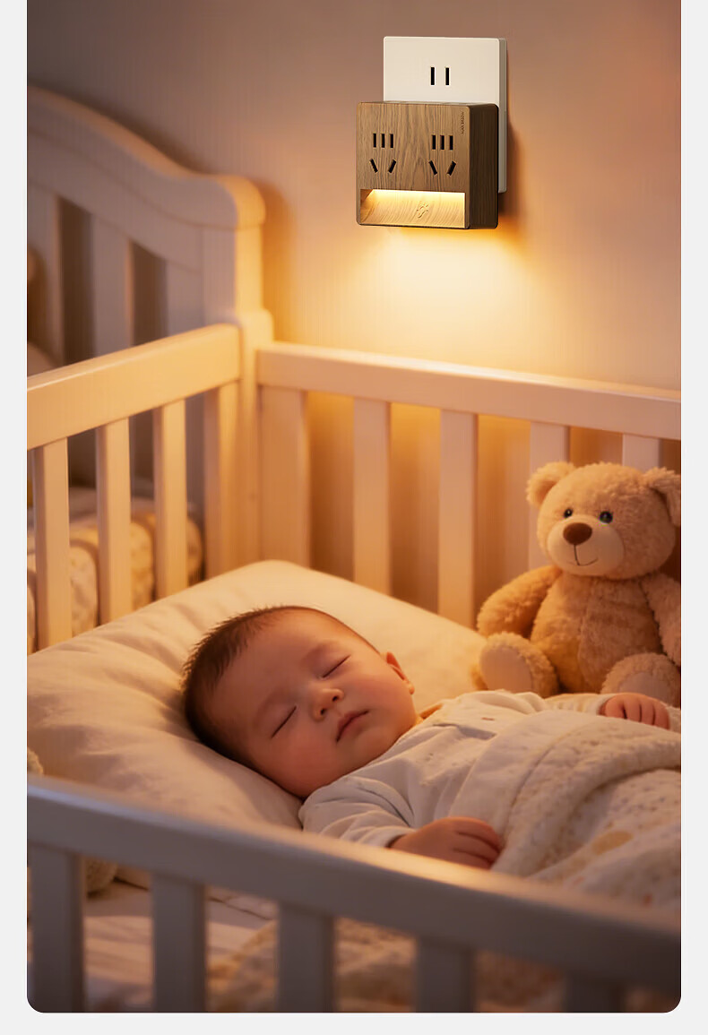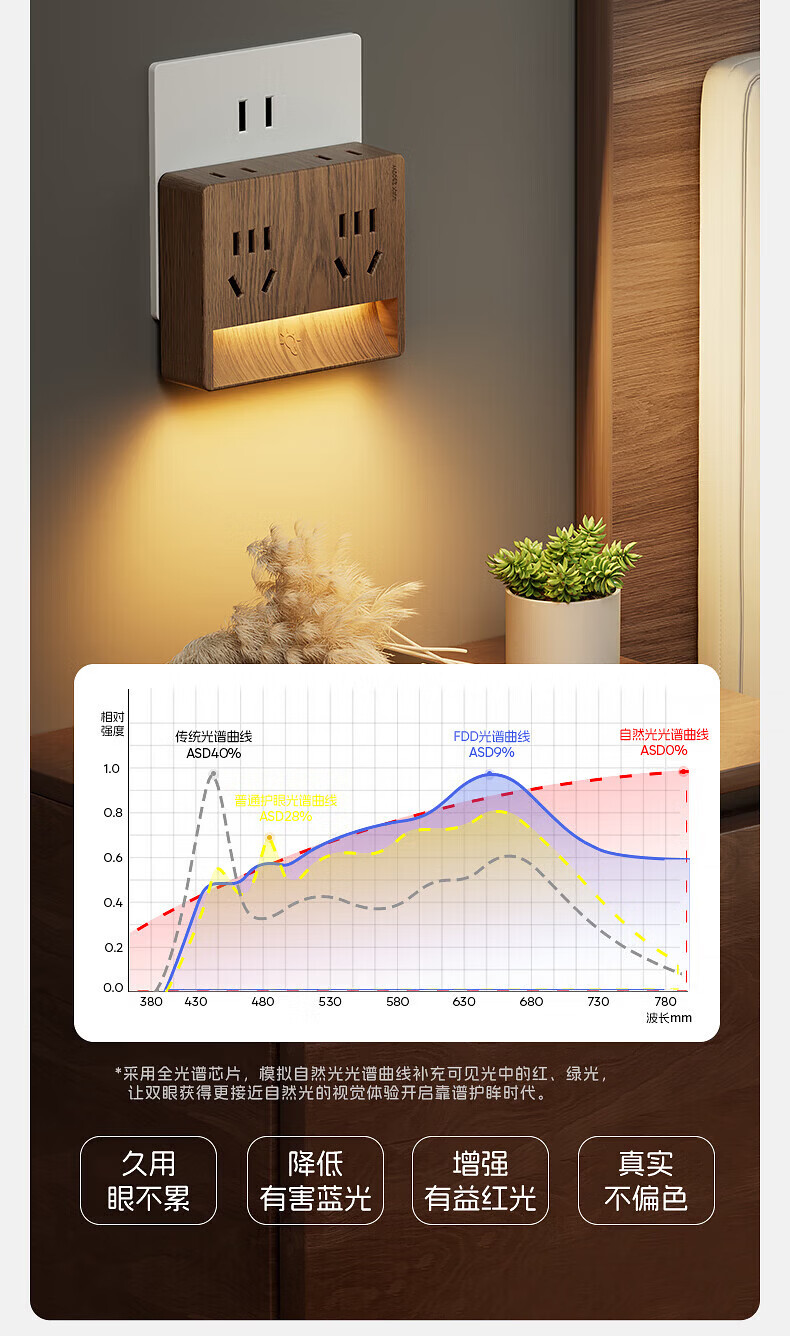 国际电工(FDD)无线插座转换器一转四扩展插座复古木纹床头小夜灯暖光护眼插排 【木纹触摸款】一转四夜灯插座