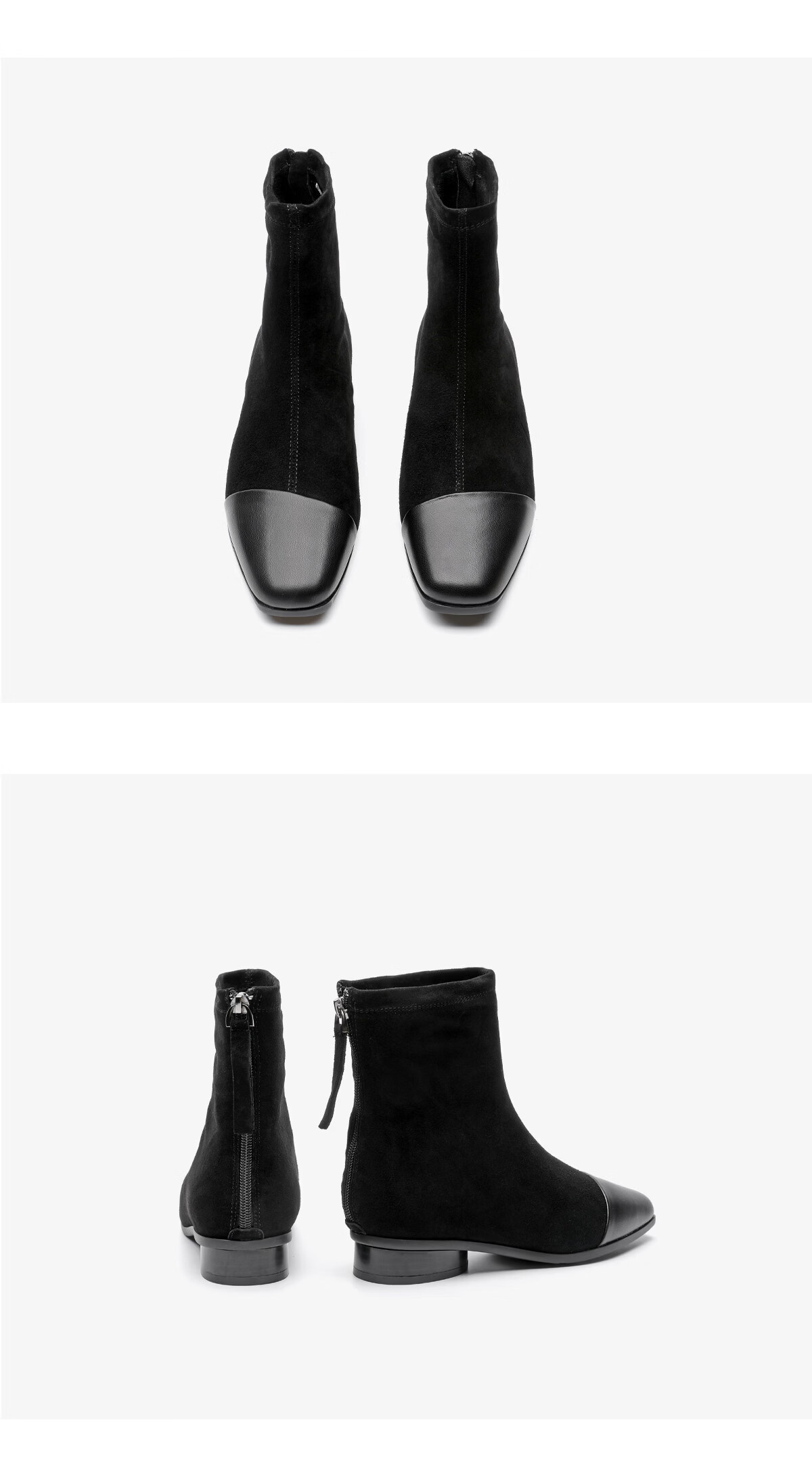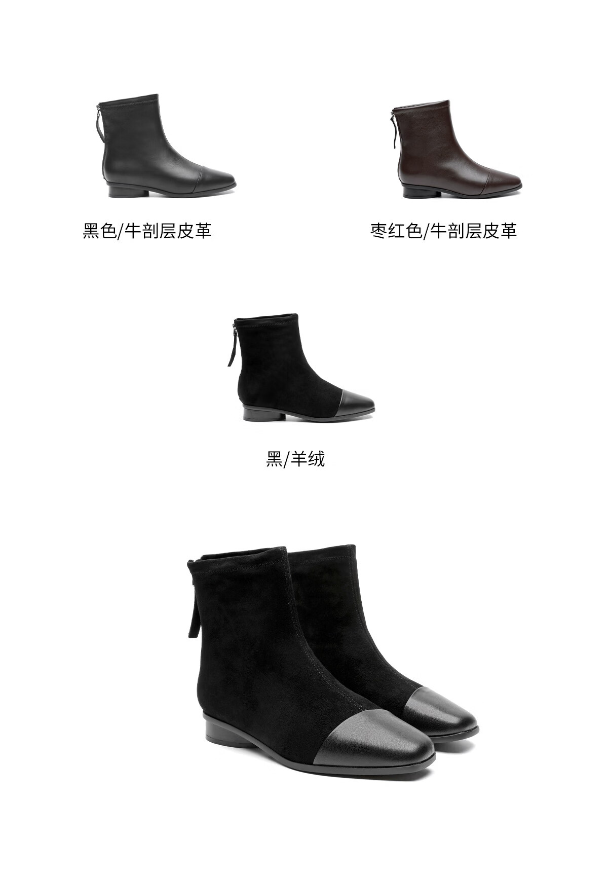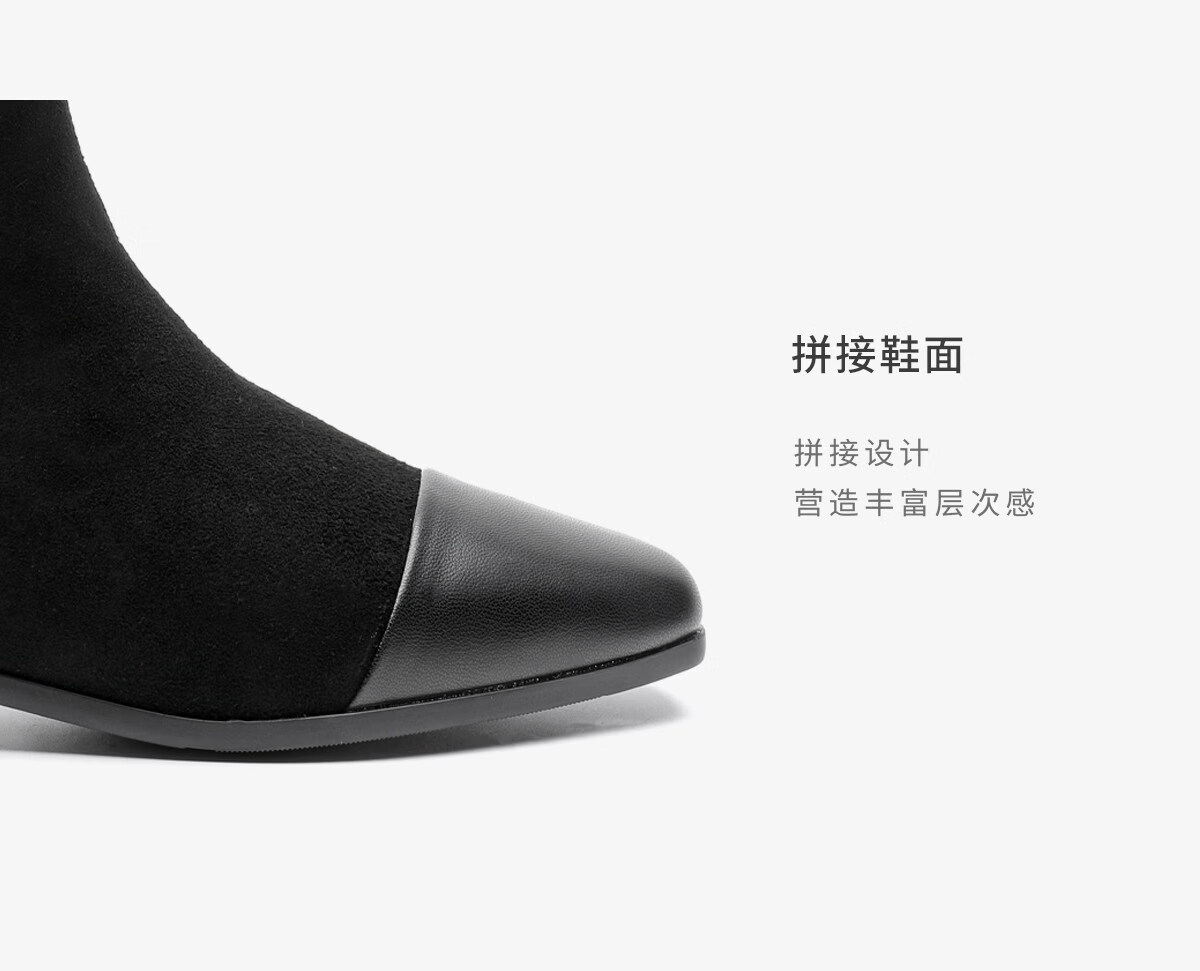 月芽儿时装靴女2025冬季新款弹力百搭瘦瘦靴后拉链通勤短筒靴 绒里黑色01T 34