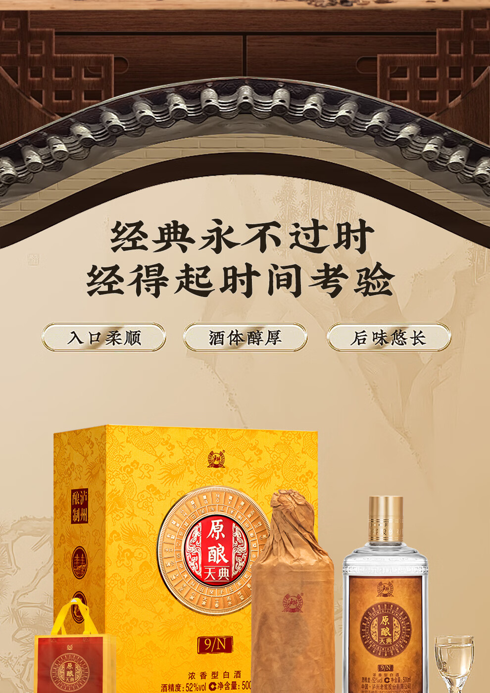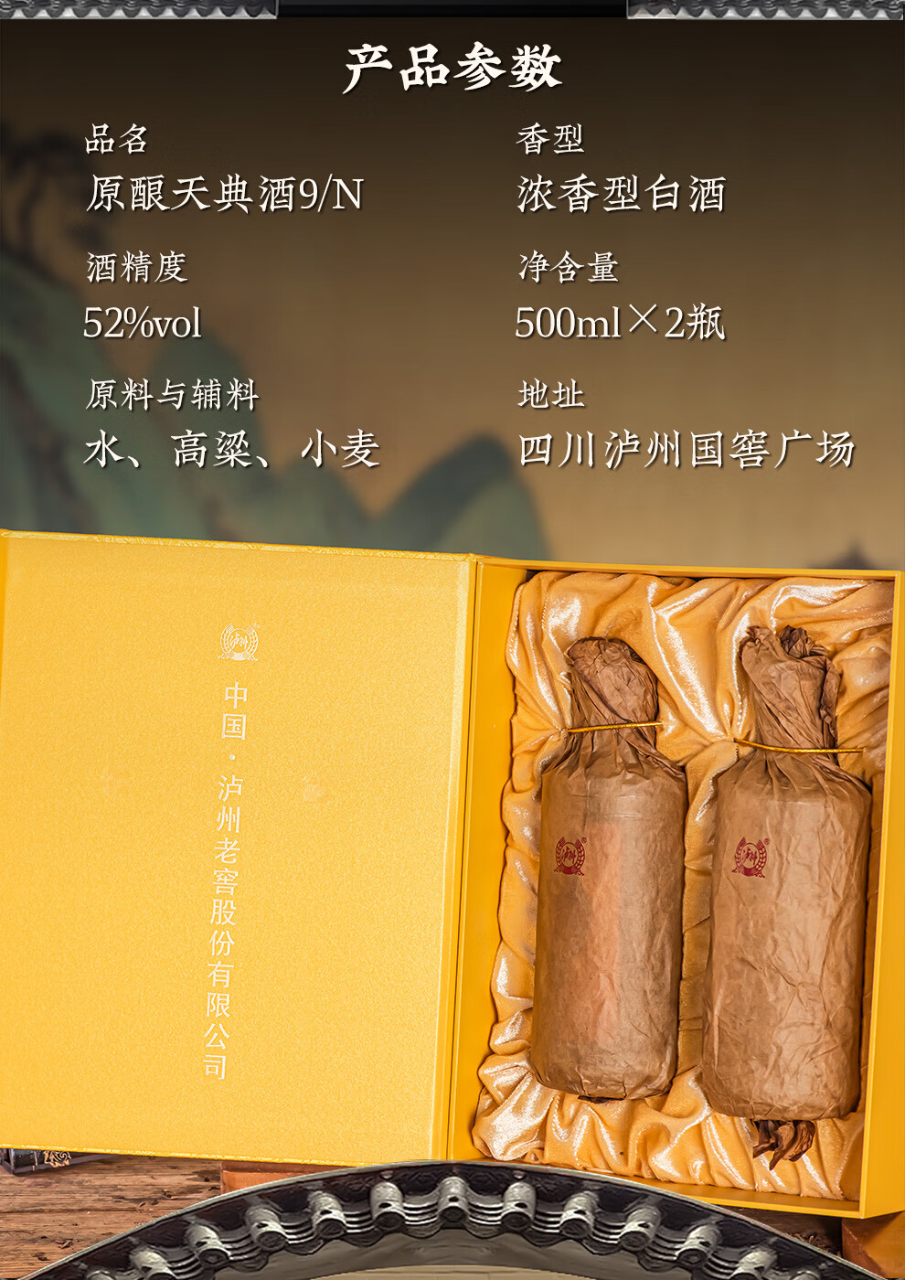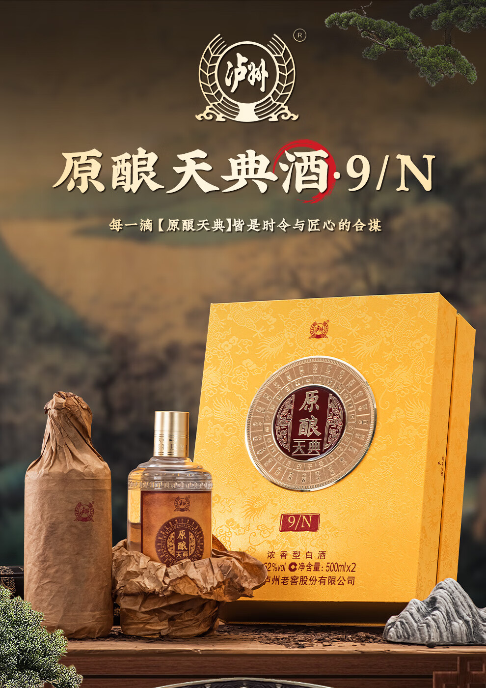 泸州老窖股份出品 原酿天典9N 浓香型白酒 二十四节气文化 高端绸布礼盒 52%vol 500mL 2瓶 赠礼袋