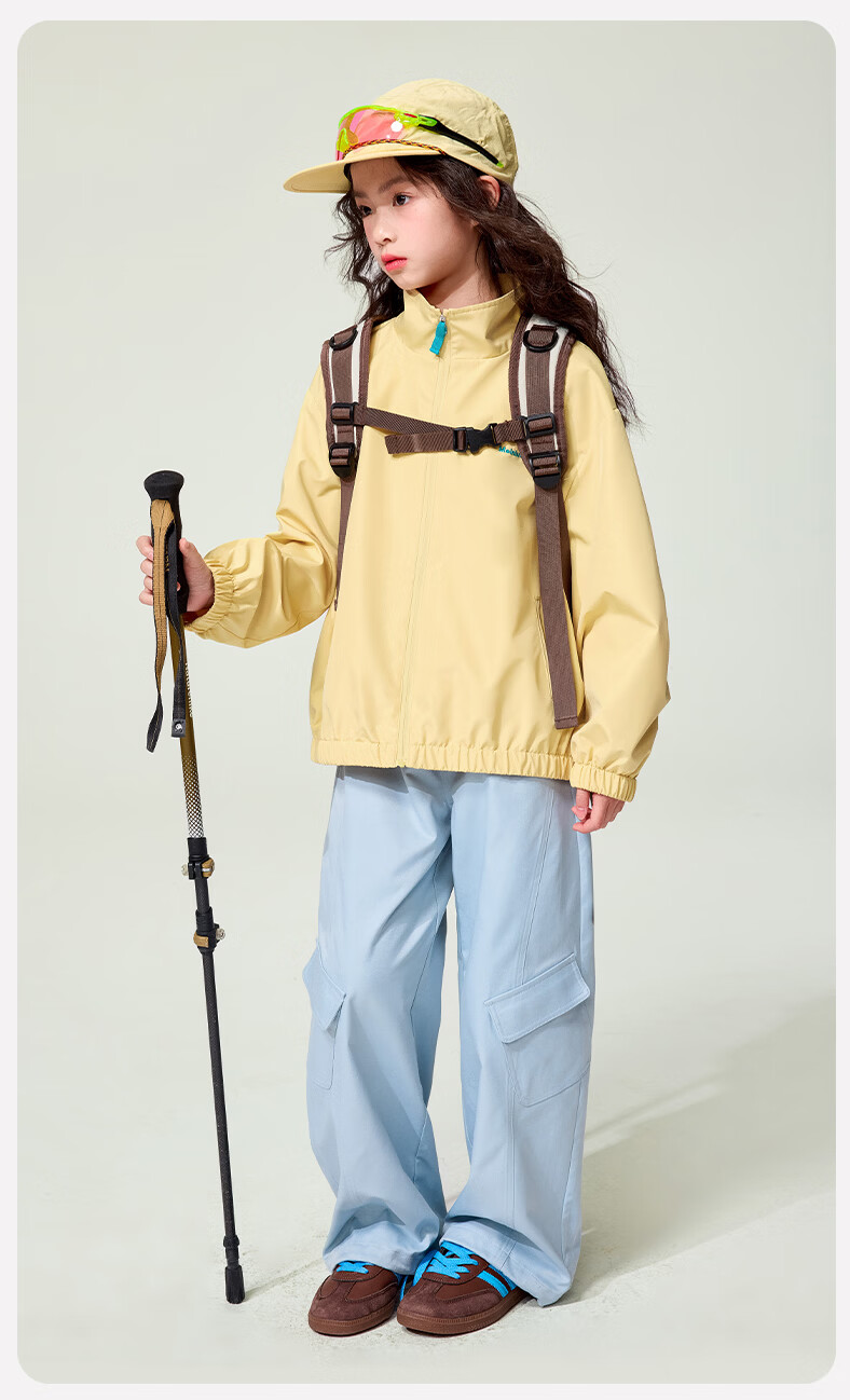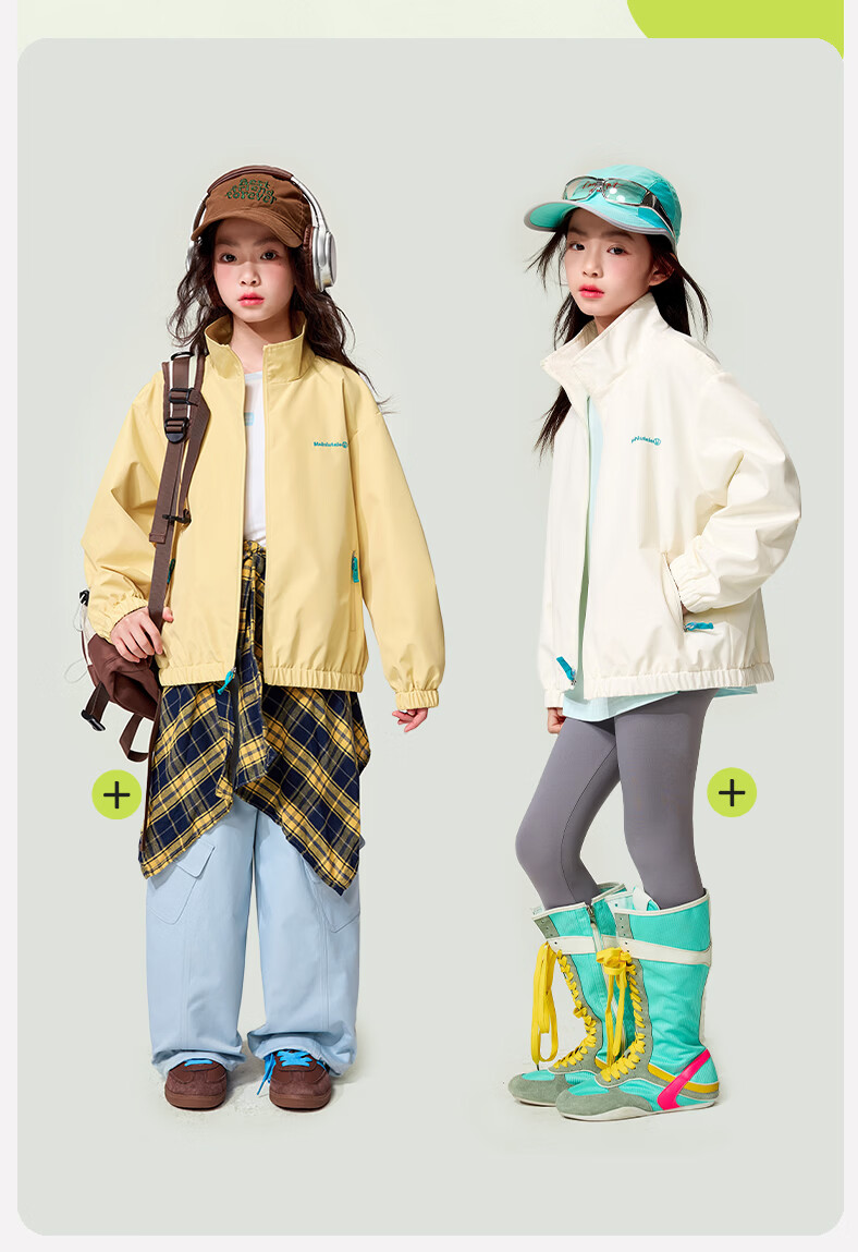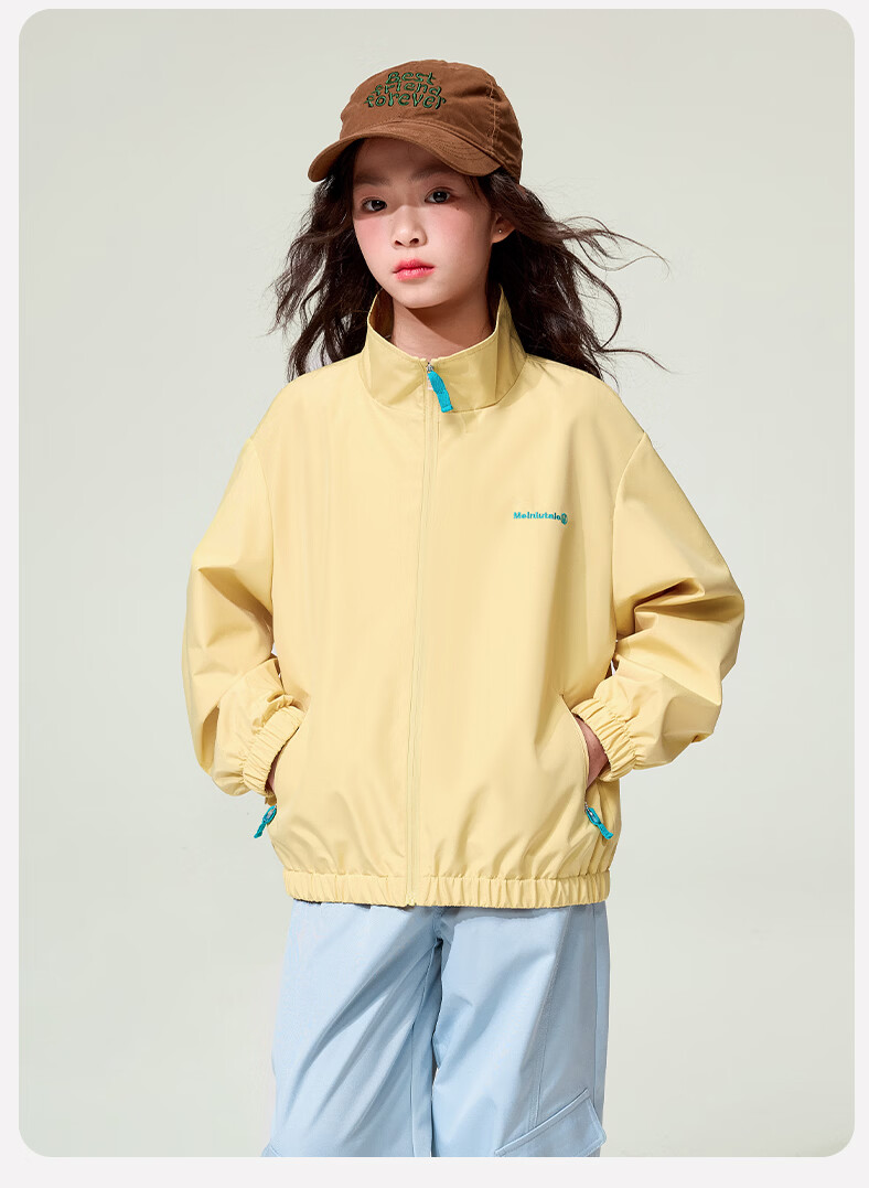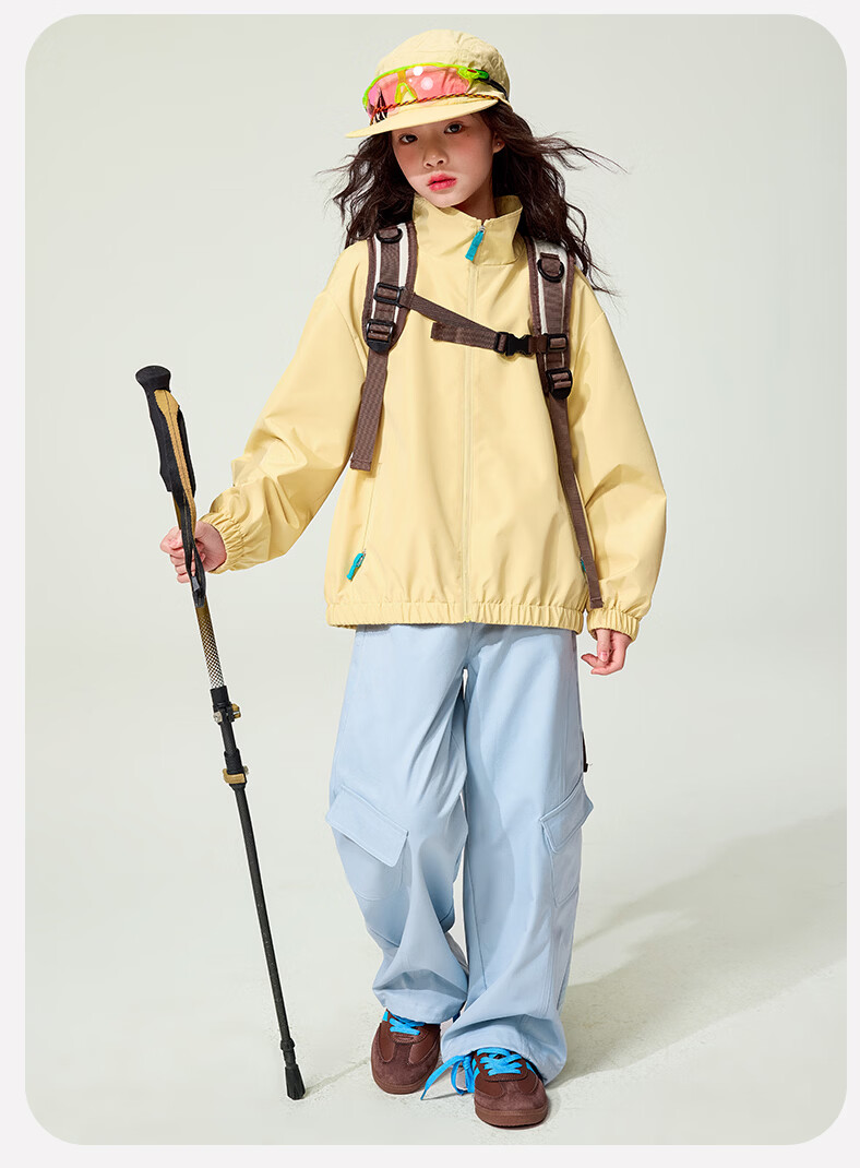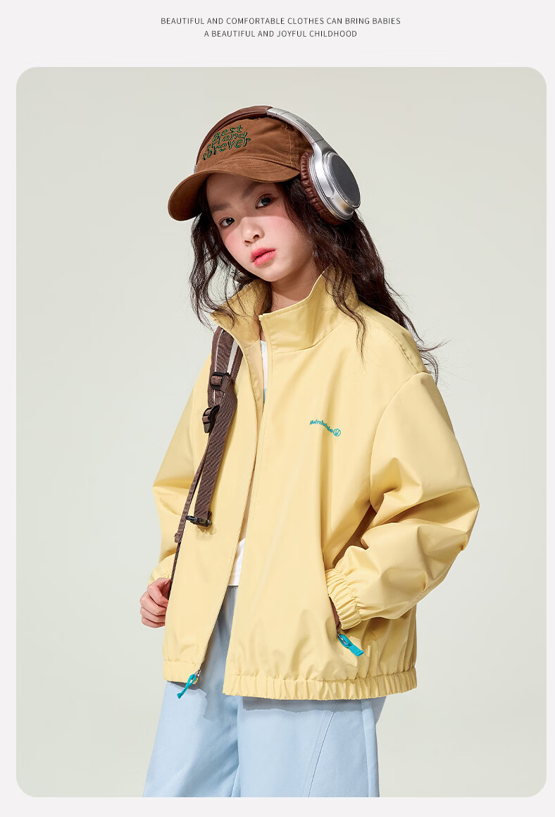 媛媛公主多巴胺软壳衣儿童外套26春秋新款女童立领户外运动夹克中大童装 黄色 110