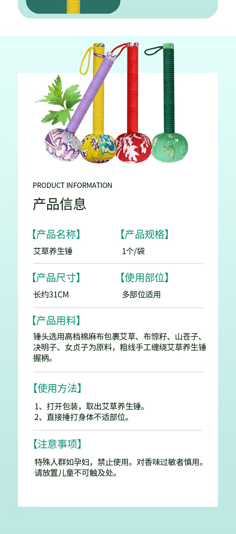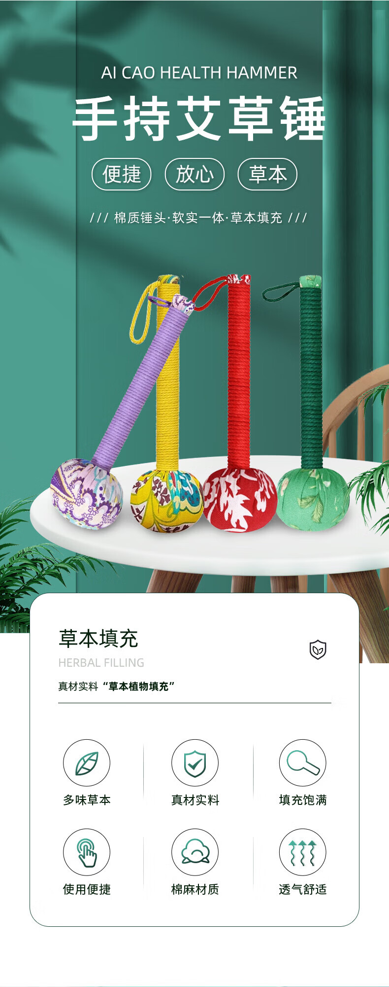 JEPOO艾草按摩锤捶背拍打锤敲背神器送妈妈送长辈颜色随机 艾草锤33cm 1个