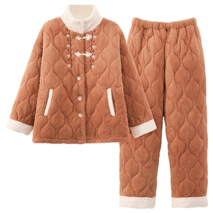 雅鹿夹棉睡衣加绒加厚保暖可外穿