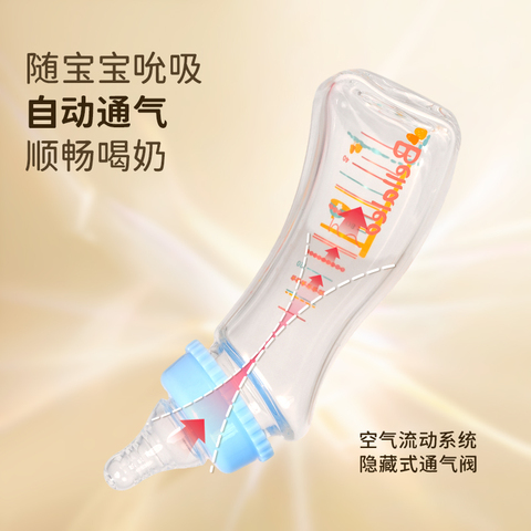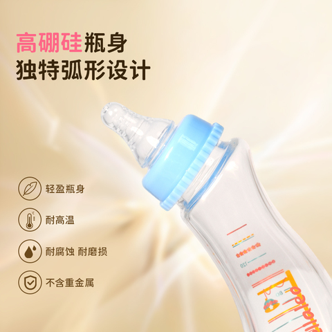 贝乐奶瓶弧度设计还原母乳喂养奶嘴防胀气瓶身可高温烫洗240ml蓝