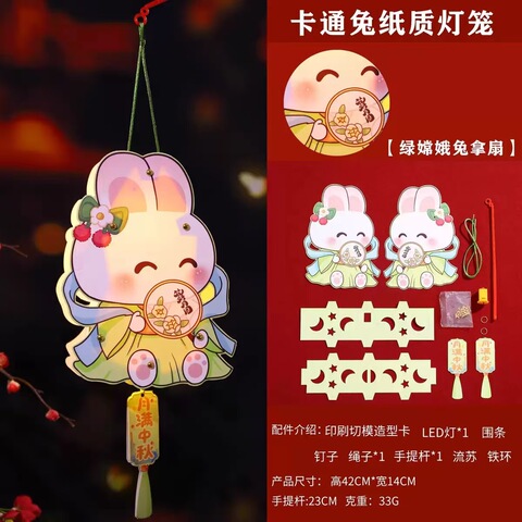 中秋节灯笼手工diy材料包儿童手提玉兔子花灯2025新款发光纸挂饰