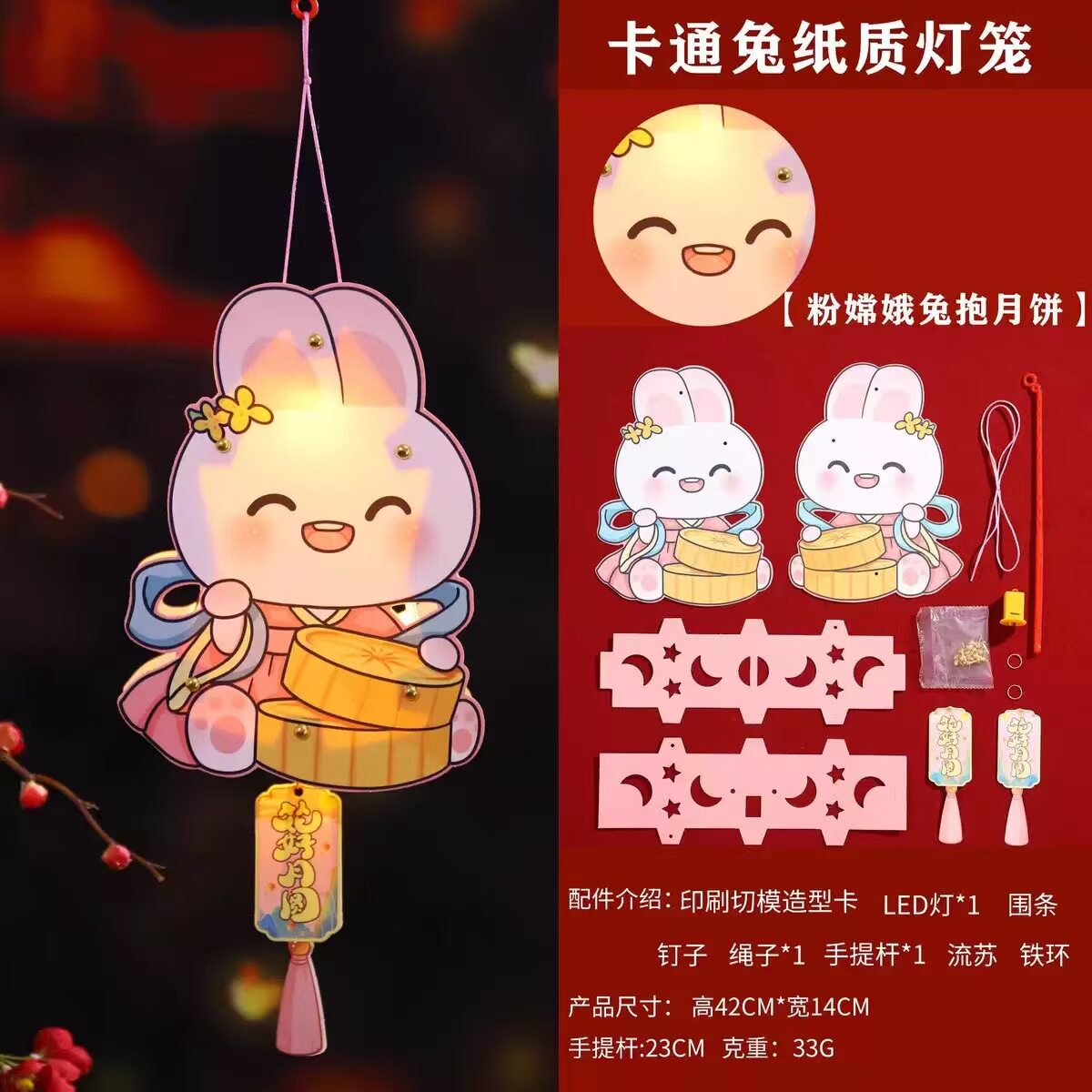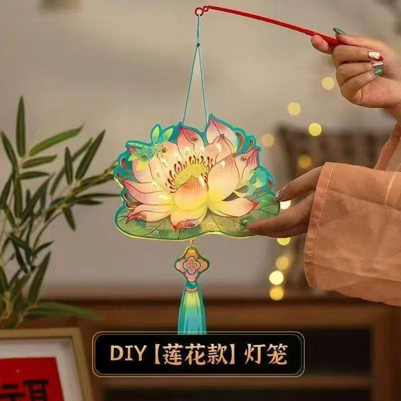 2025新款中秋节灯笼DIY材料包,含玉兔花灯+发光纸挂饰,适合儿童手工制作,趣味又温馨,点亮节日气氛!