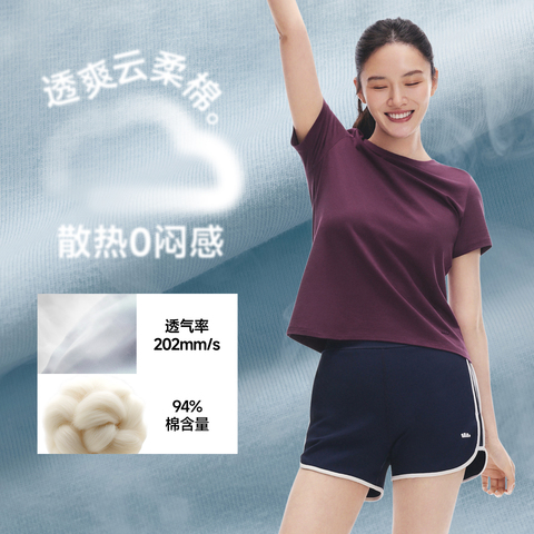 蕉下T恤女棉短袖上衣休闲春夏白色通勤修身透气衣服户外打底衫