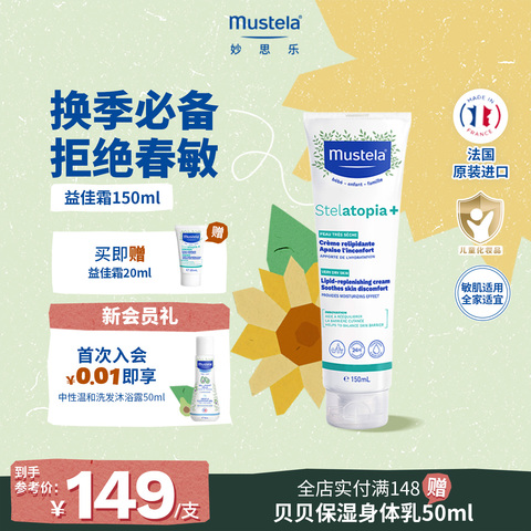 (赠同款益佳霜20ml)法国mustela妙思乐思恬雅滋润膏儿童宝宝身体乳干红婴儿无香润肤(叠淘金币16.18+88vip95折到手120.62)!!