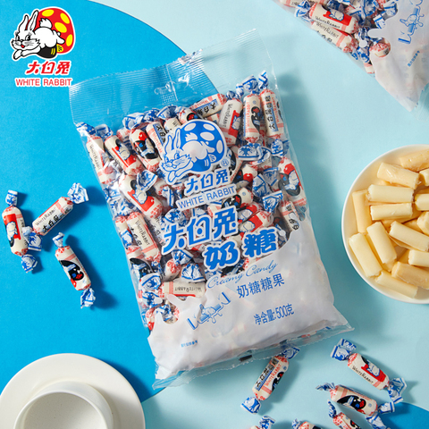 经典童年味道!大白兔奶糖原味500g大包装,官方旗舰店正品,适合儿童和怀旧人群,浓郁奶香,甜而不腻,回忆满满!