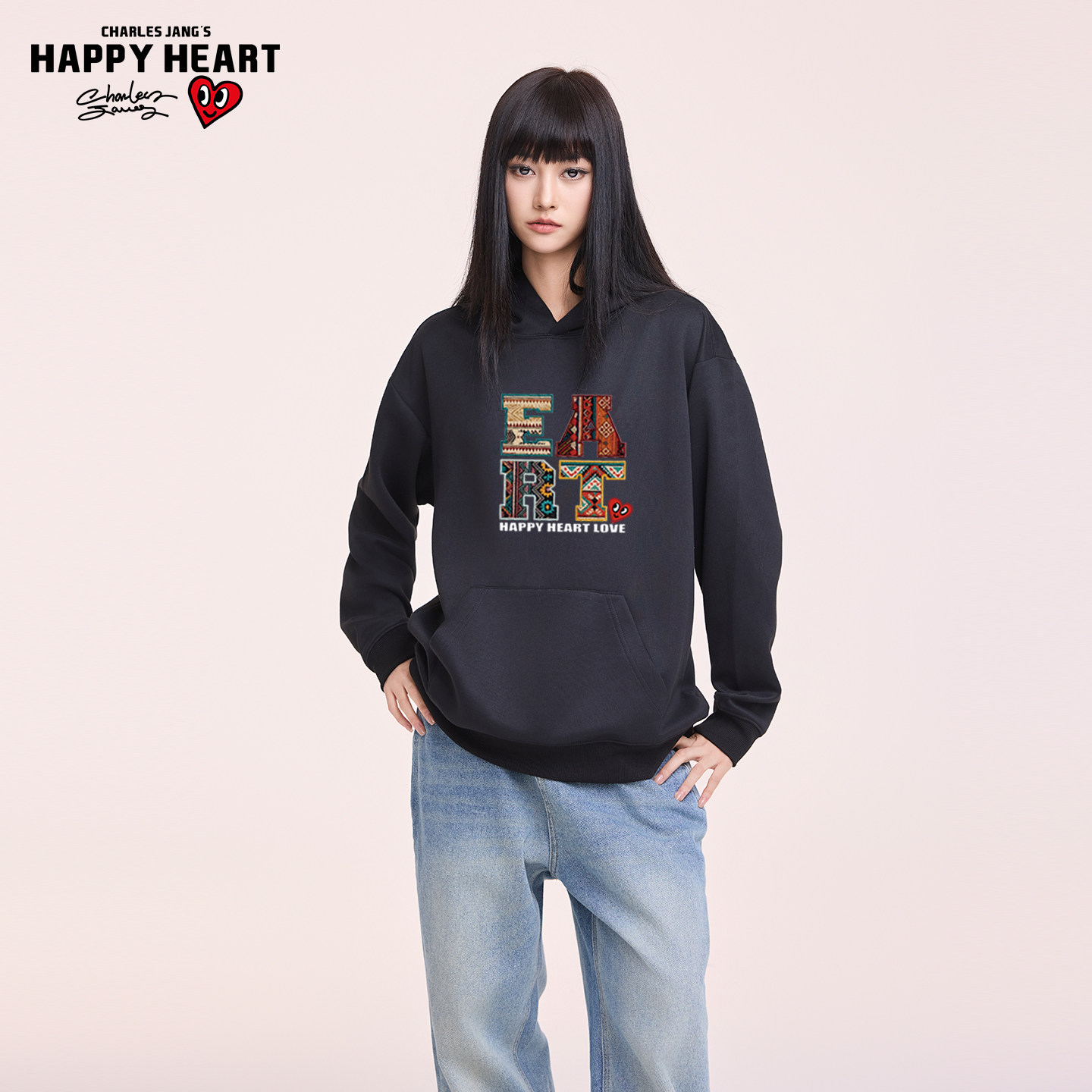 【王楚然代言】查尔斯桃心民族风字母印花男女春上新宽松圆领卫衣
