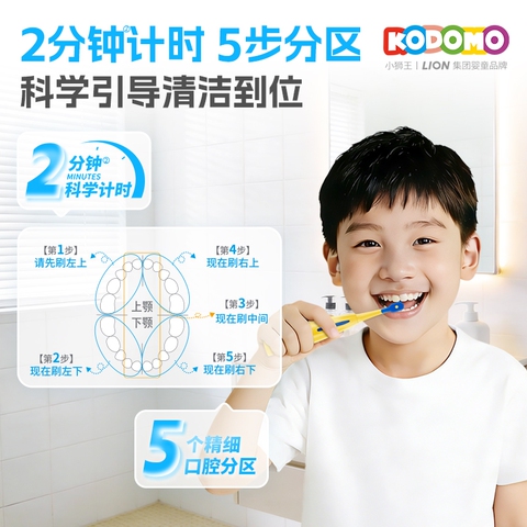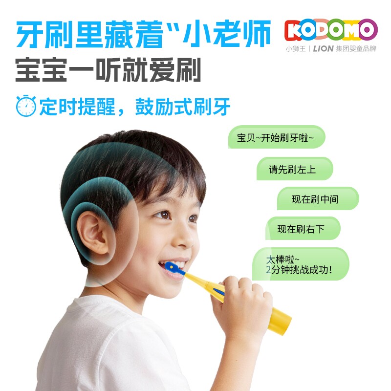 到手199/套,送奥拉氟牙膏20g+湿巾10片*1包!狮王KODOMO小狮王儿童骨传导电动牙刷,智能语音互动,3-12岁专用礼盒装,呵护孩子牙齿健康,趣味刷牙更主动!