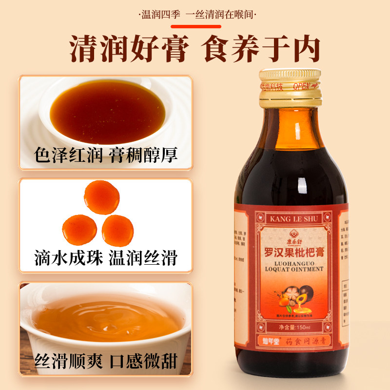 康乐舒罗汉果枇杷膏,清润咽喉护嗓神器!甘草配方,适合日常养生,非润肺止咳,化痰糖浆膏方。拍2件享优惠价,呵护嗓子更实惠!