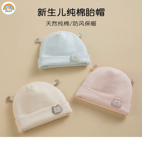 彩虹房子婴儿胎帽a类0-1岁双层护囟门帽男女宝宝春秋冬保暖帽