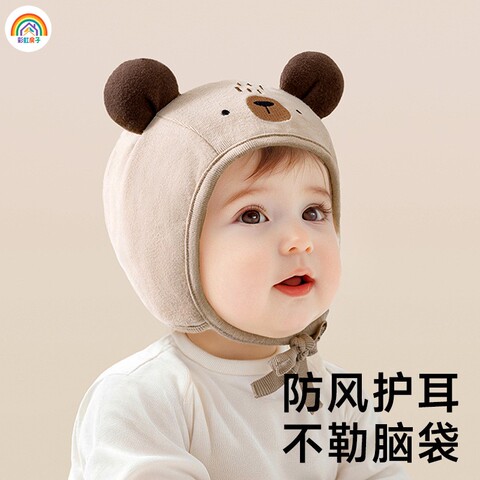 彩虹房子A类双层护囟门帽,春秋冬三季适用,柔软保暖,保护宝宝娇嫩头部,男女宝宝通用,舒适贴合不掉毛!