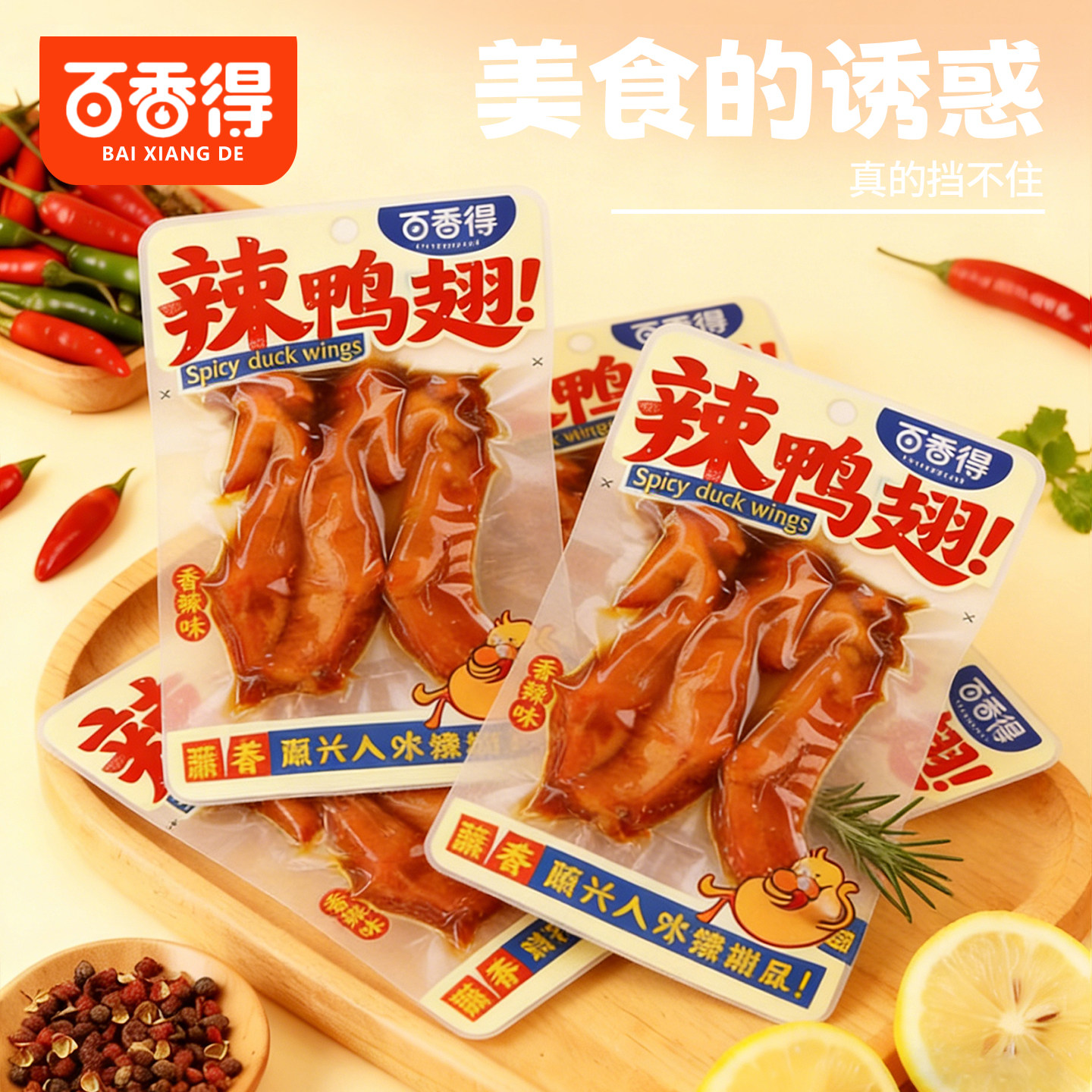 百香得香辣鸭翅尖休闲零食卤味鸭掌辣鸭翅根鸭小腿翅熟食小吃即食