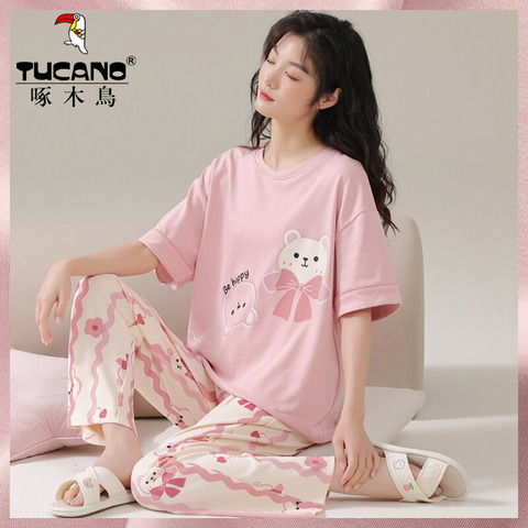 啄木鸟可爱风睡衣女短袖春夏天2026年新款家居服套装可外穿高级感