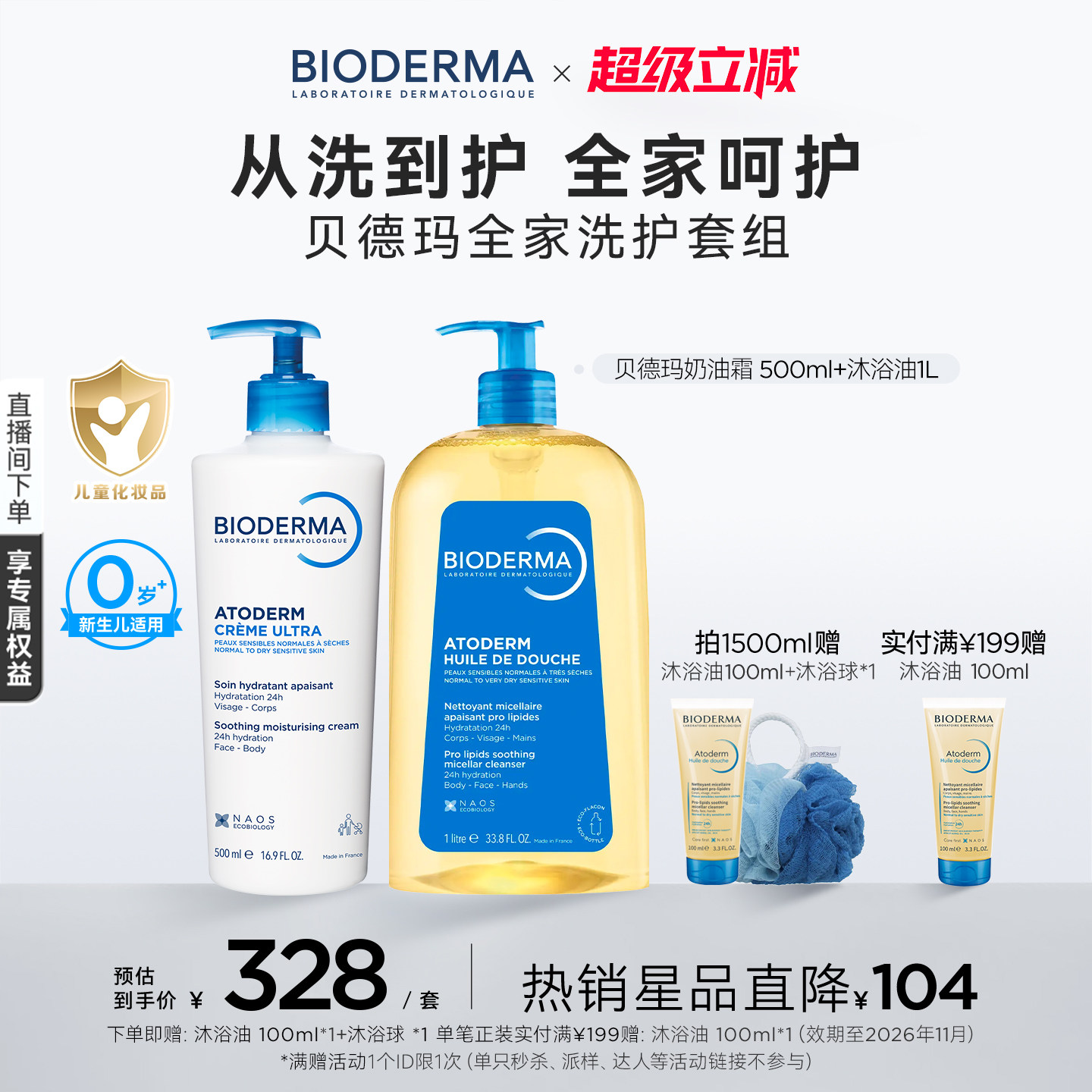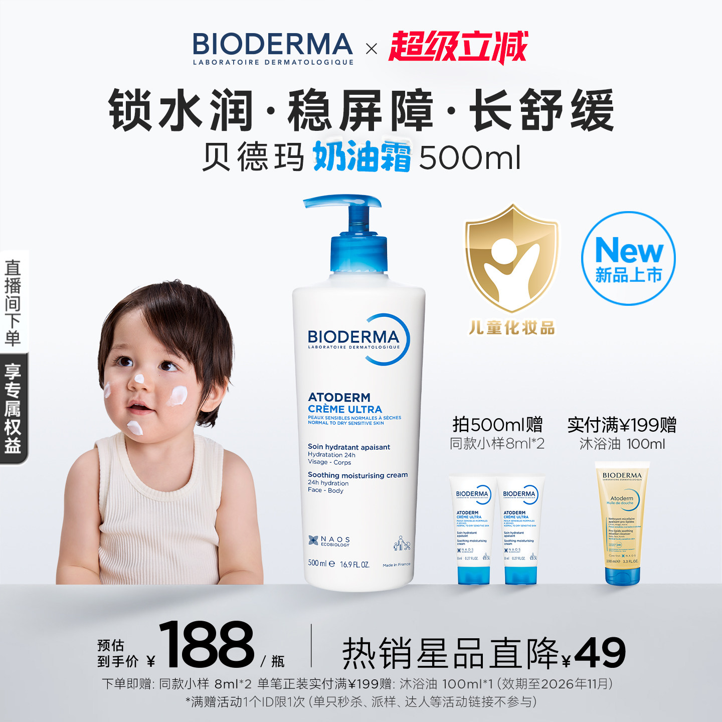 【叠加淘金币6.78元,到手176.22元,拍500mI赠同款小样8ml*2,实付满¥199赠沐浴油100ml】全新贝德玛奶油霜身体乳家庭版儿童宝宝面霜,超赞~