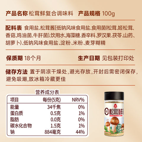 莲花松茸鲜调味料无添加家用100g宝宝蘑菇鲜煲汤底料炒菜